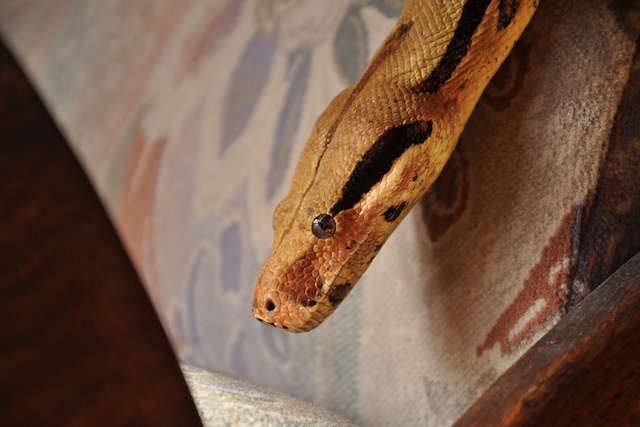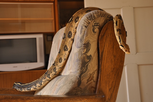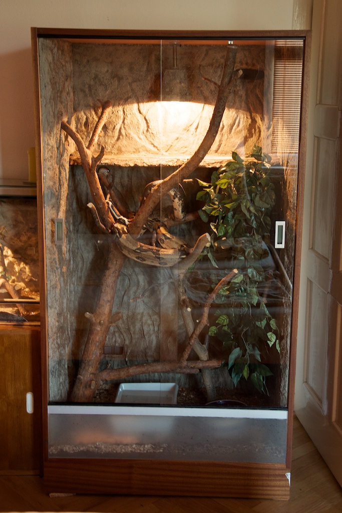 Ahoj lidi. Řeším problém. Minulý rok jsme dostali jako svatební dar 15ti letého Boa constrictor...postavili mu ze skříně pěkné terárko a žili s ním doteď v ložnici... (ještě s kámošem python regius). Jenže - před pár dny se nám narodila holčička a tak se priority přesunuly jinam - potřebujeme místo na postýlku a propriety a takhle velký had zabírá spoustu místa. Hledám pro něj tedy nového páníčka.. Je to starší pán, moc hodný, rád se prolézá po celém terku, dobře baští a občas se rád vykoupe. Obrázky v příloze. Cena symbolická (pouze aby se nějak kompenzovala hodnota terárka), nebo za odvoz (Praha-západ). Budeme moc rádi za pomoc s hledáním nového hodného páníčka!