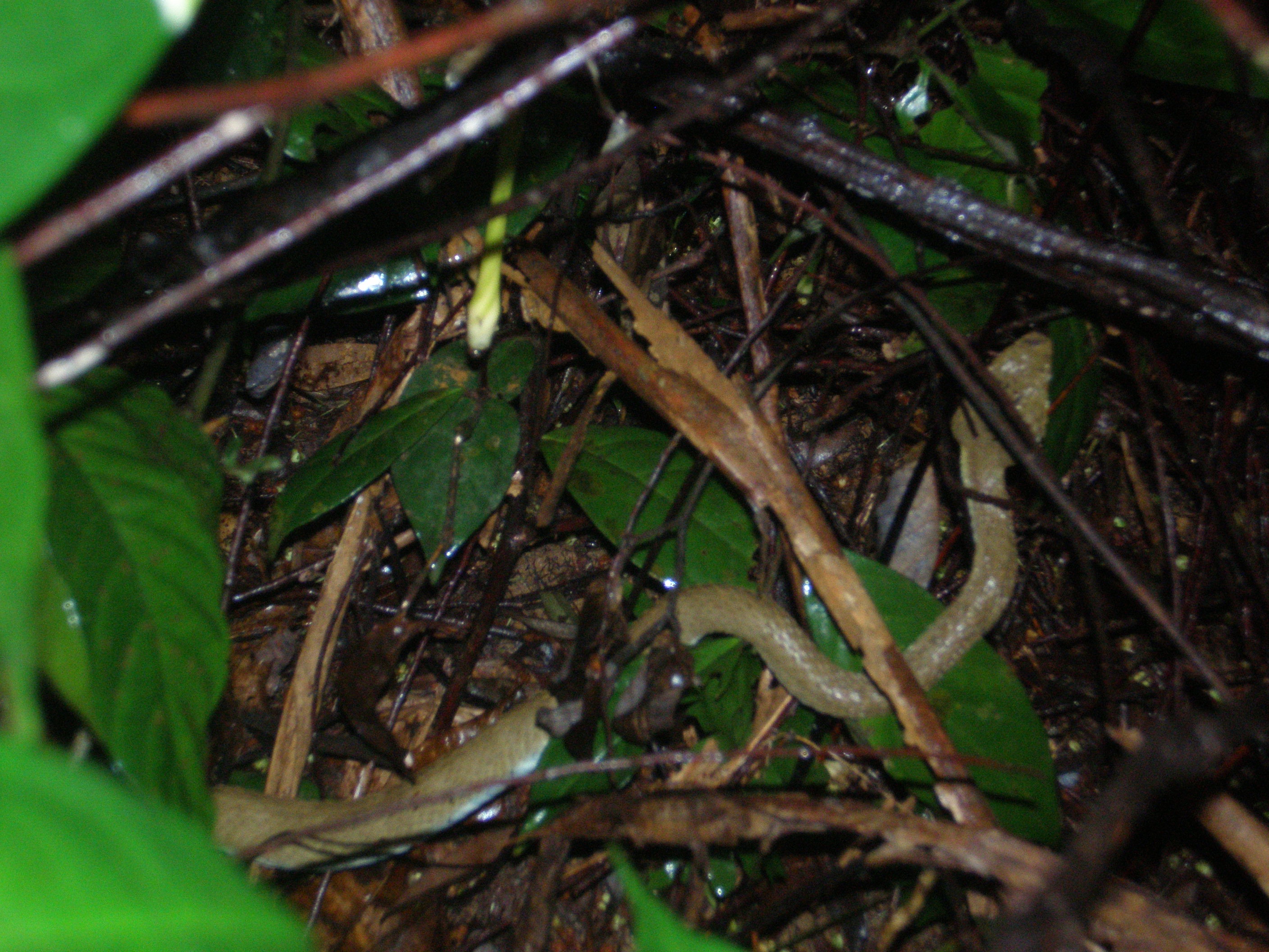 Nakonec jsem si taky zkusil zalozit vlakno. Vydrzel jsem temer rok v nevedomosti, ale ted mne to po prispevcich v jinych vlaknech nejak pohlo, takze tady lepim dve fotky a zkusim se zeptat, jestli mi nekdo umi poradit se zarazenim tohoto hada. Fotka je z tropickeho destneho lesa v severovychodnim Gabunu. Hadek nase setkani nastesti prezil, nebot krovi zrejme mistnim hadobijcum uplne nevyhovovalo. Mam takovy osobni pocit, ze by to mohl byt nejaky jedovaty druh, neco jako atheriska. No nic, tesim se na nazory lidi, co do toho vidi, a dopredu za ne dekuju.