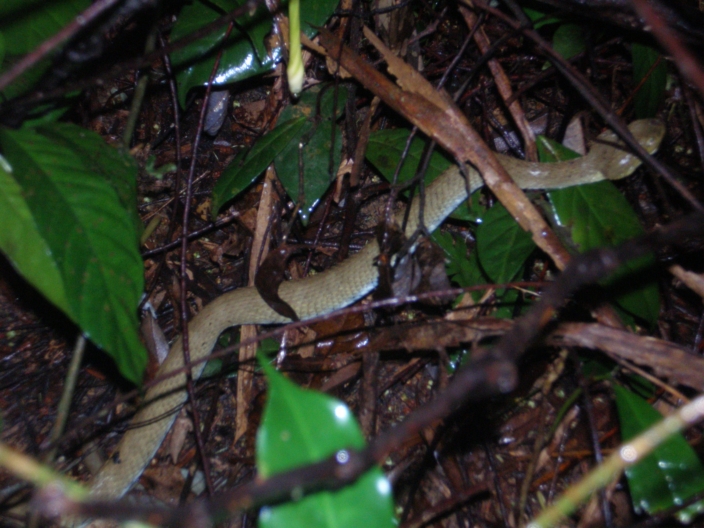 Nakonec jsem si taky zkusil zalozit vlakno. Vydrzel jsem temer rok v nevedomosti, ale ted mne to po prispevcich v jinych vlaknech nejak pohlo, takze tady lepim dve fotky a zkusim se zeptat, jestli mi nekdo umi poradit se zarazenim tohoto hada. Fotka je z tropickeho destneho lesa v severovychodnim Gabunu. Hadek nase setkani nastesti prezil, nebot krovi zrejme mistnim hadobijcum uplne nevyhovovalo. Mam takovy osobni pocit, ze by to mohl byt nejaky jedovaty druh, neco jako atheriska. No nic, tesim se na nazory lidi, co do toho vidi, a dopredu za ne dekuju.