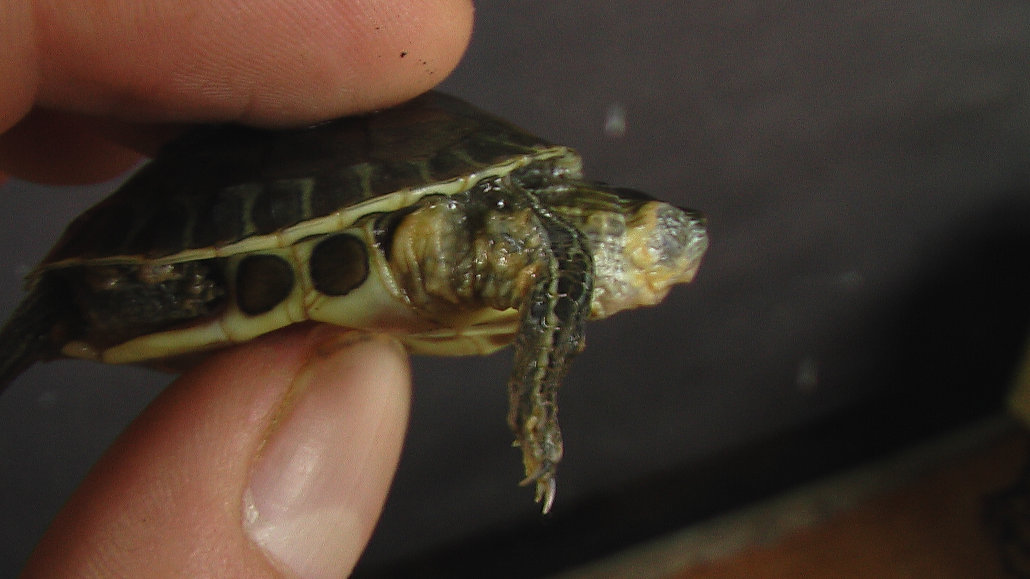 Potřebuji poradit s nemocnými želvami Ocadia sinensis. Velikost: 3,5cm, Pro všechny jsou stejné příznaky: Žlutavé boláčky v oblasti krku, hlavy, končetin, občas mezi destičkami na karapaxu, plastron je v pořádku. Typický dlouhý ocas je jakoby bez citu (skoro až zaschlý konec). Celkově jsou želvy apatycké, drží se celý den i noc na souši, nežerou. Voda má 25 stupňů a je čistá, oběm vody 80litrů. Želvy dávám sušit, jednou za dva dny dávám napít. Bohužel nic nejde k lepšímu poraďte prosím.