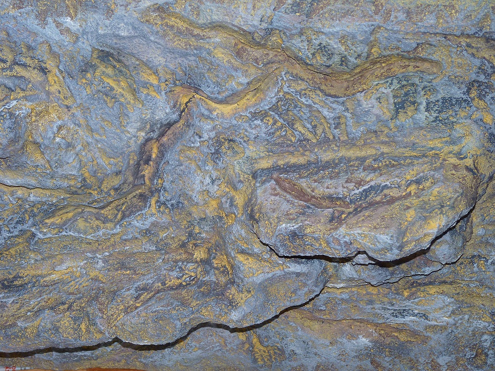 Taky se připojím s mým výtvorem. Základ OSB desky na ně polystyren a pak universální lepidlo na dlaždičky. Do posledních dvou vrstev jsem zamíchal tónovací malířskou barvu a křemičitý písek kvůli drsnější struktuře povrchu. Nakonec matný sportakryl a je vymalováno. Jinak si taky myslím, že sádra je naprosto špatná volba a co se týče pěny versus polys. tak moje volba bude vždy polystyren. Při výrobě úkrytů a polic je to daleko čistější práce než to patlat z pěny.... Je to ale jen můj názor a zkušenost..:-x