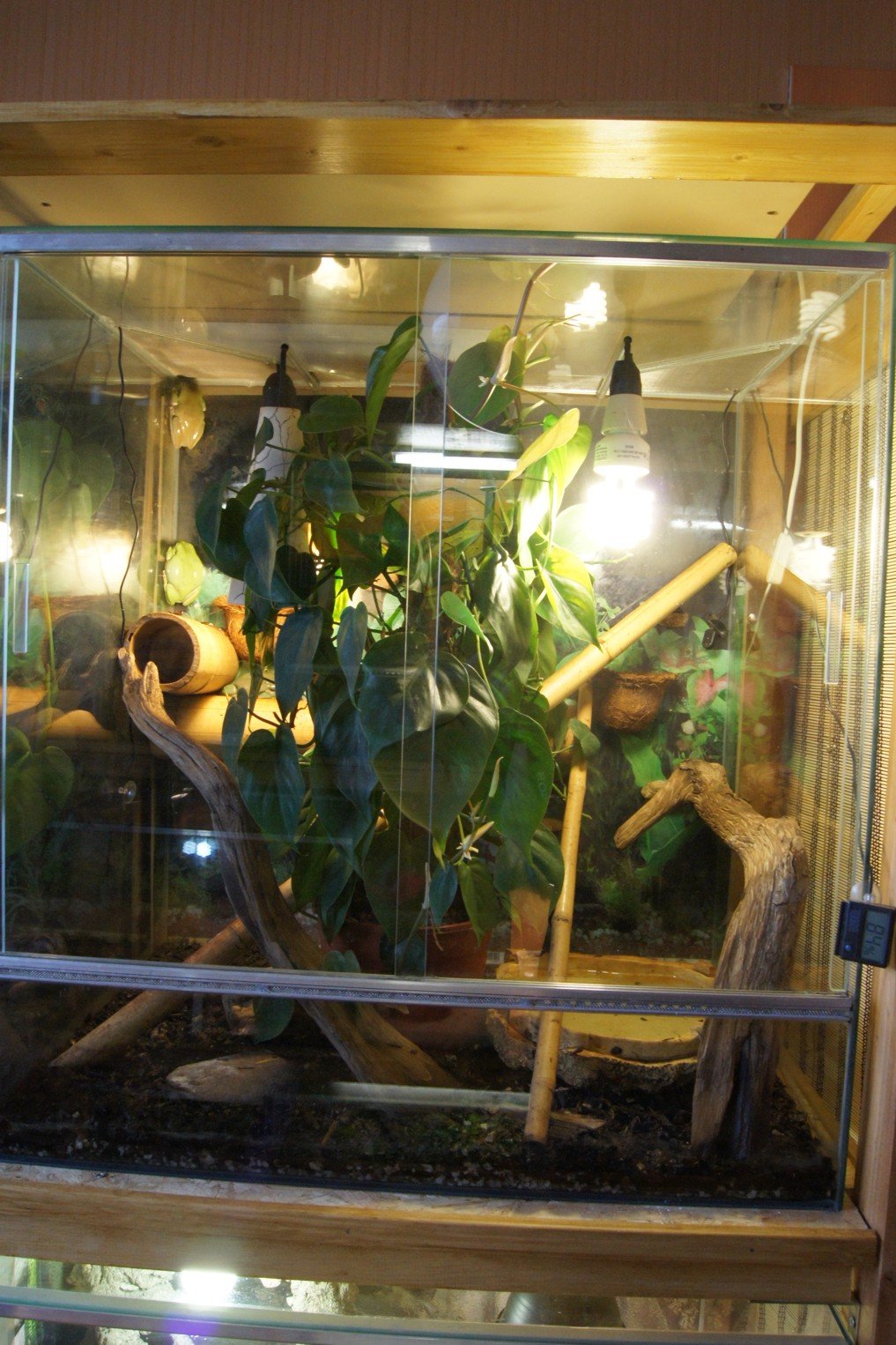 Terárium nemá ideální velikost to vím, je asi metr dlouhé, ale jenom půl metru vysoké, zatím se snažim sehnat větší, od někoho komu třeba stojí na půdě. Pokud ho neseženu budu ho muset nechat udělat, ale zatím na to moc nespěchám, myslím, že budu mít ještě nějakou dobu , než rosnice vyrostou.
