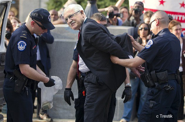 Po týždni ho riaditeľ zoberie na obed, keď pri vedľajšom stole sedí český prezident. Ten hneď: Nazdar Tono! No jak se máš, dlouho sem ťe nevidel!