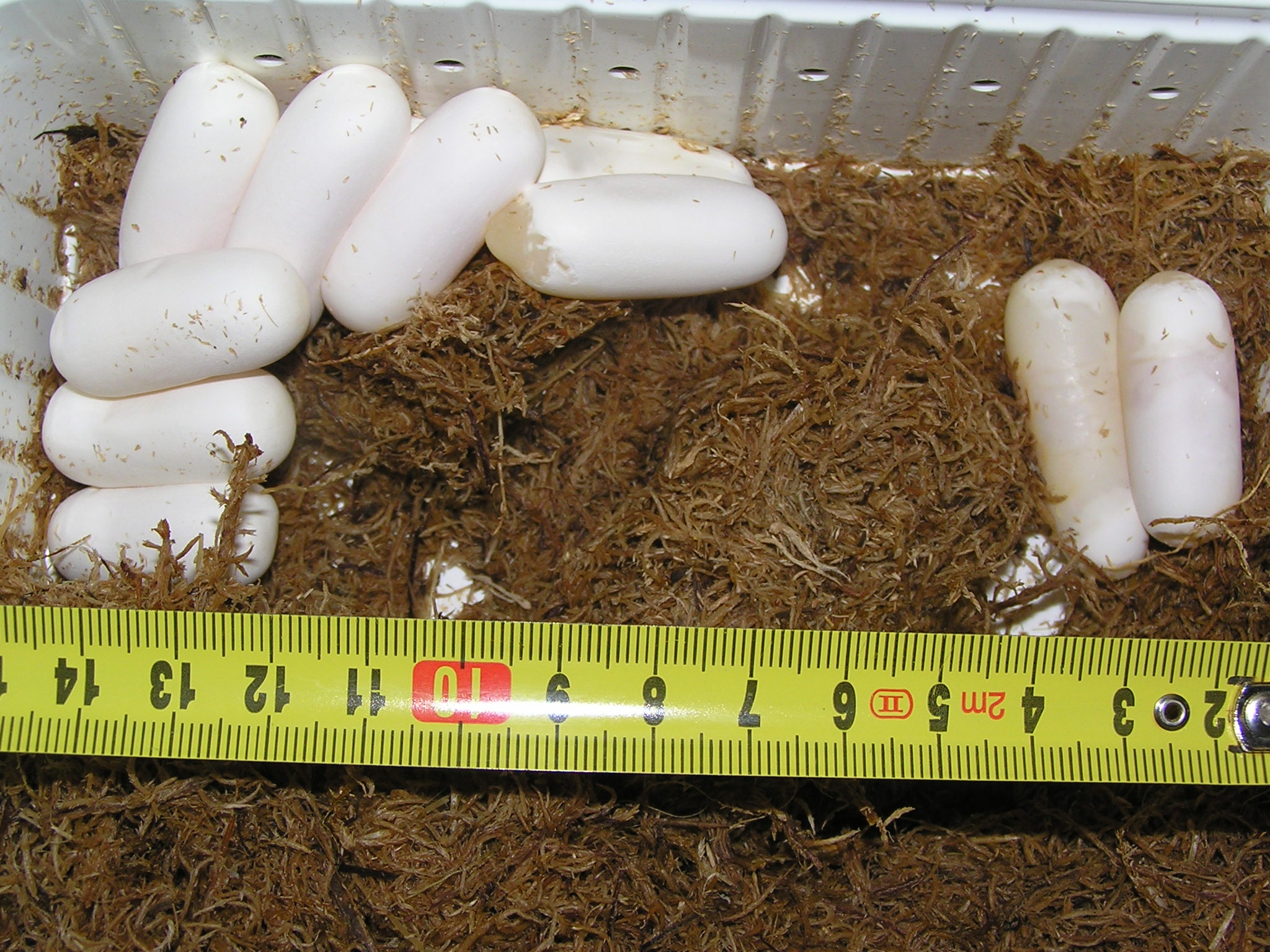 Už se začínají líhnout. A samice ve stejný okamžik vykladla další snůžku