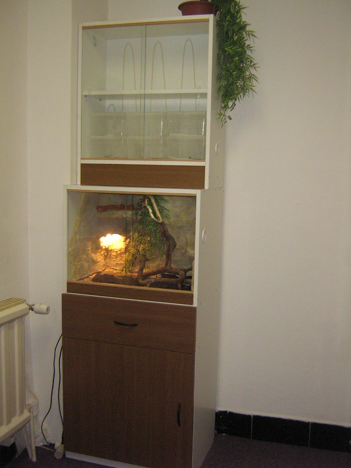 Nechlubím se ani tak tím teráriem, jako spíš tím nábytkem pod ním. Vyrobeno vlastnoručně dle vlastního návrhu z 18mm lamina.