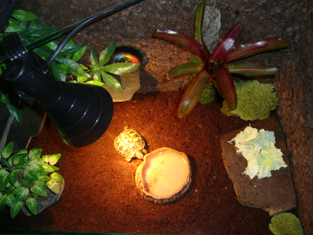 Želva úkryt kdysi měla, ale nikdy do něj nelezla, teď nejraději spí pod lampou, i když zrovna nesvítím, vyhrabala si tam takový důlek a už se z něj nehne:) Užovky to měly jen provizorně, byl to odchov, dneska už jsou u nových majitelů a hrozňa se už koupe v bazénku, má větší terko,ale na té fotce to terárko je vyfocené celé.