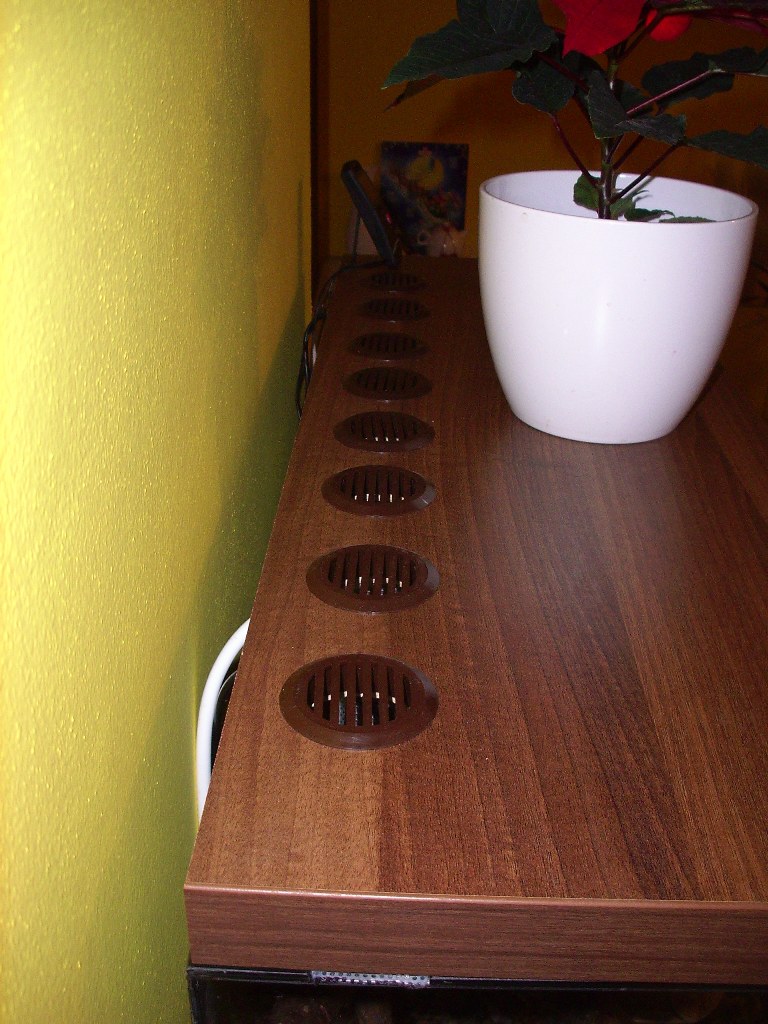 Větrání je na hoře. Ta deska má v sobě přesně 57 větších dírek :)