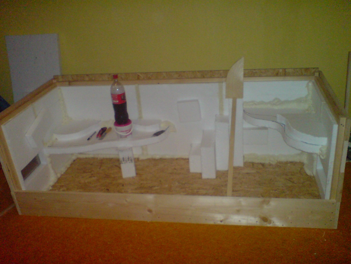 Je to jen vyrezany polystyren, montazni pena, lepidlo, barva. Muzu dat foto ze stavby pokud budete chtit, tak nejakou dokumentaci fotek jsem si udelal.