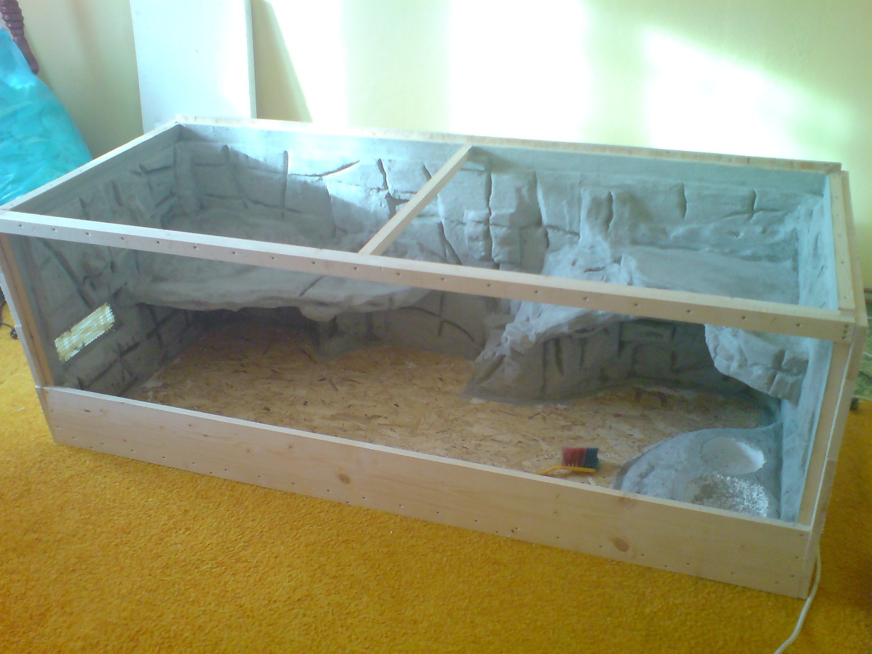 Taky přidám svou troškou do mlýna, je to terarko pro agamu kočinčinskou. Vše bylo děláno vlastními silami. Pokud máte nějáký nápad na vylepšení budu rád.