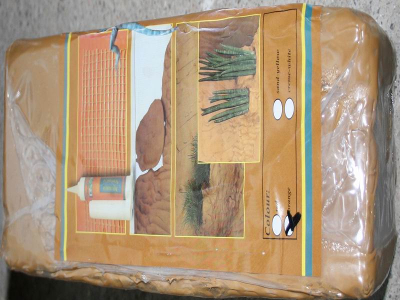 Hmota by se mela chovat tak ze se nanese na zdrsnene pozadi, vytvrdne a necha se pouzit jako pozadi do teraria pro sklipkany.