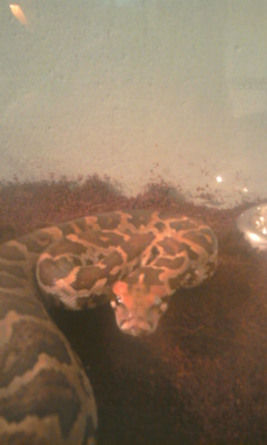 Dneska celý den leží v teráriu, není ničím a ani nikým rušena, ale stejně, leží neustále pohazuje ocasem, a startuje, na každý pohyb. Jak mě to mrzí, tak bych jí klidně vyměnil i za krajtu tmavou, tygrovanou... Kterou jsem původně myslel, že kupujeme. Teď je odemně asi 3 metry, je otočená do zdi, svihá ocasem, takže jsem asi koupil zajíce v pytli,,,
