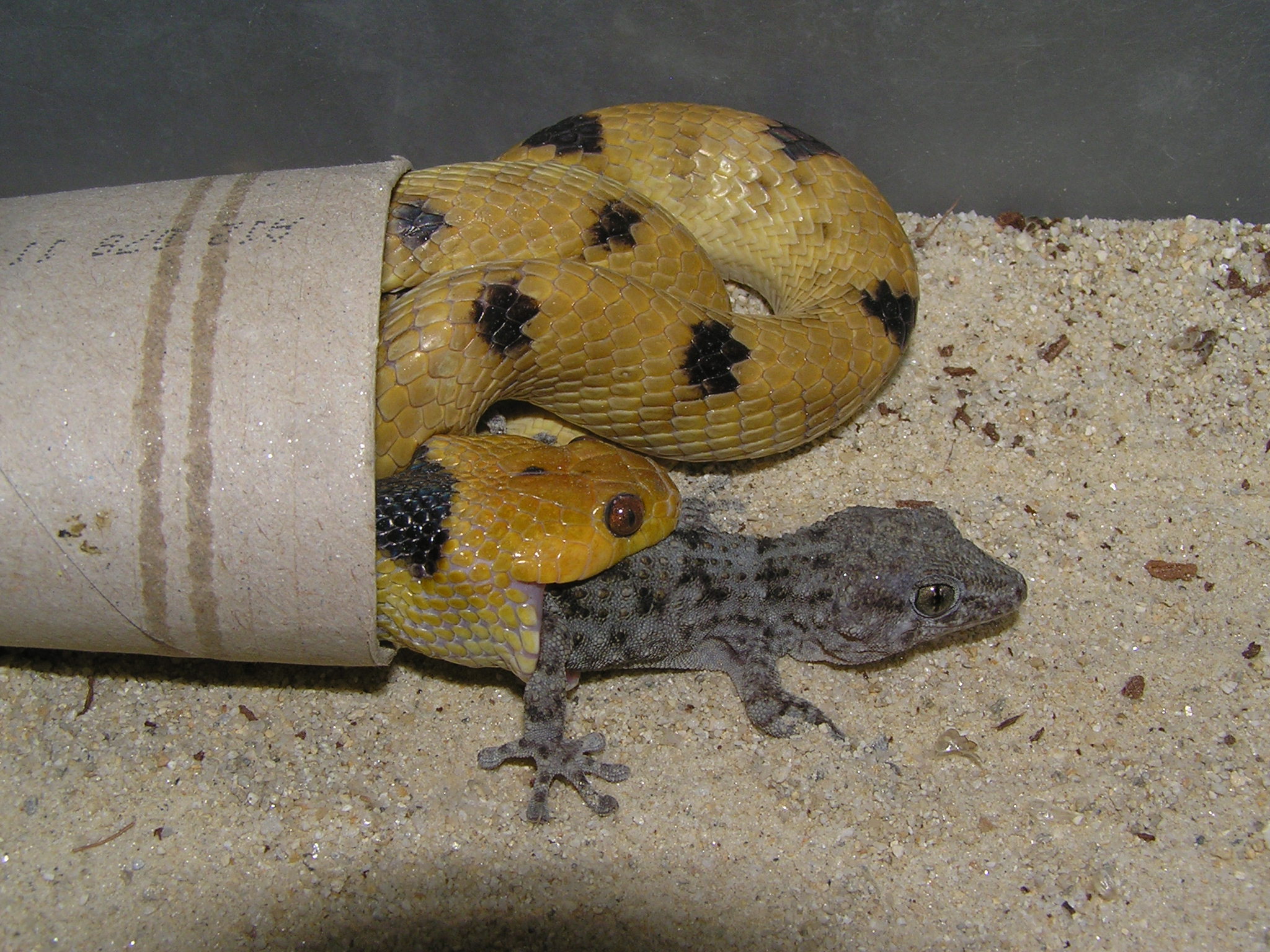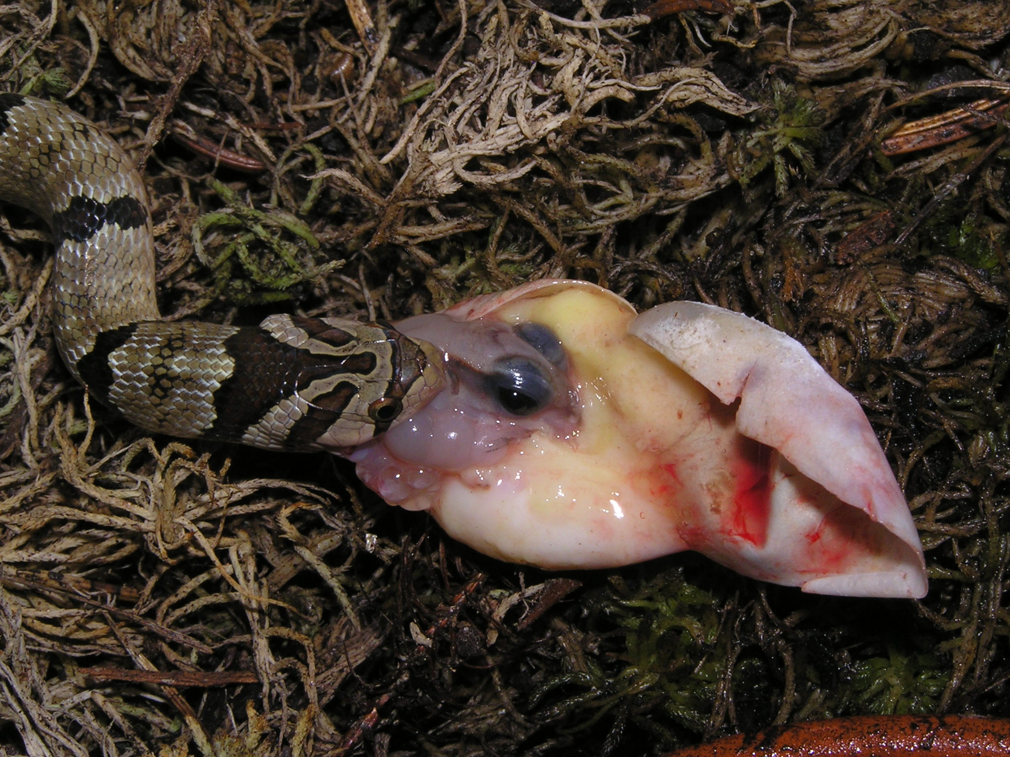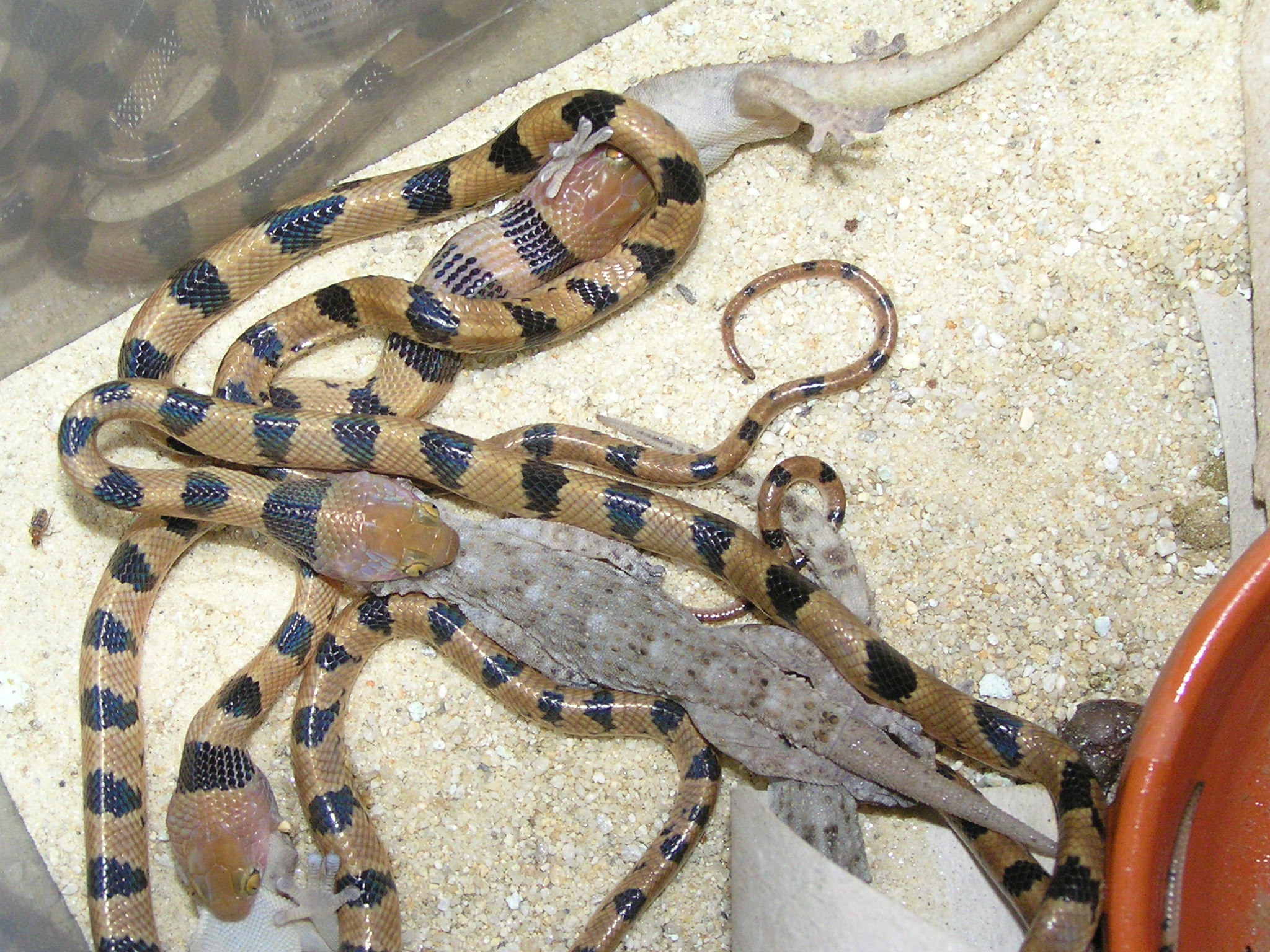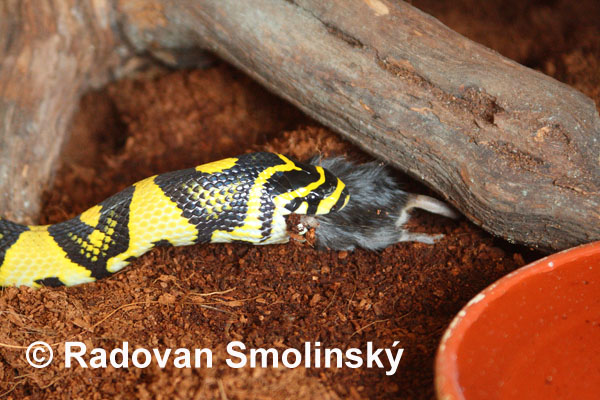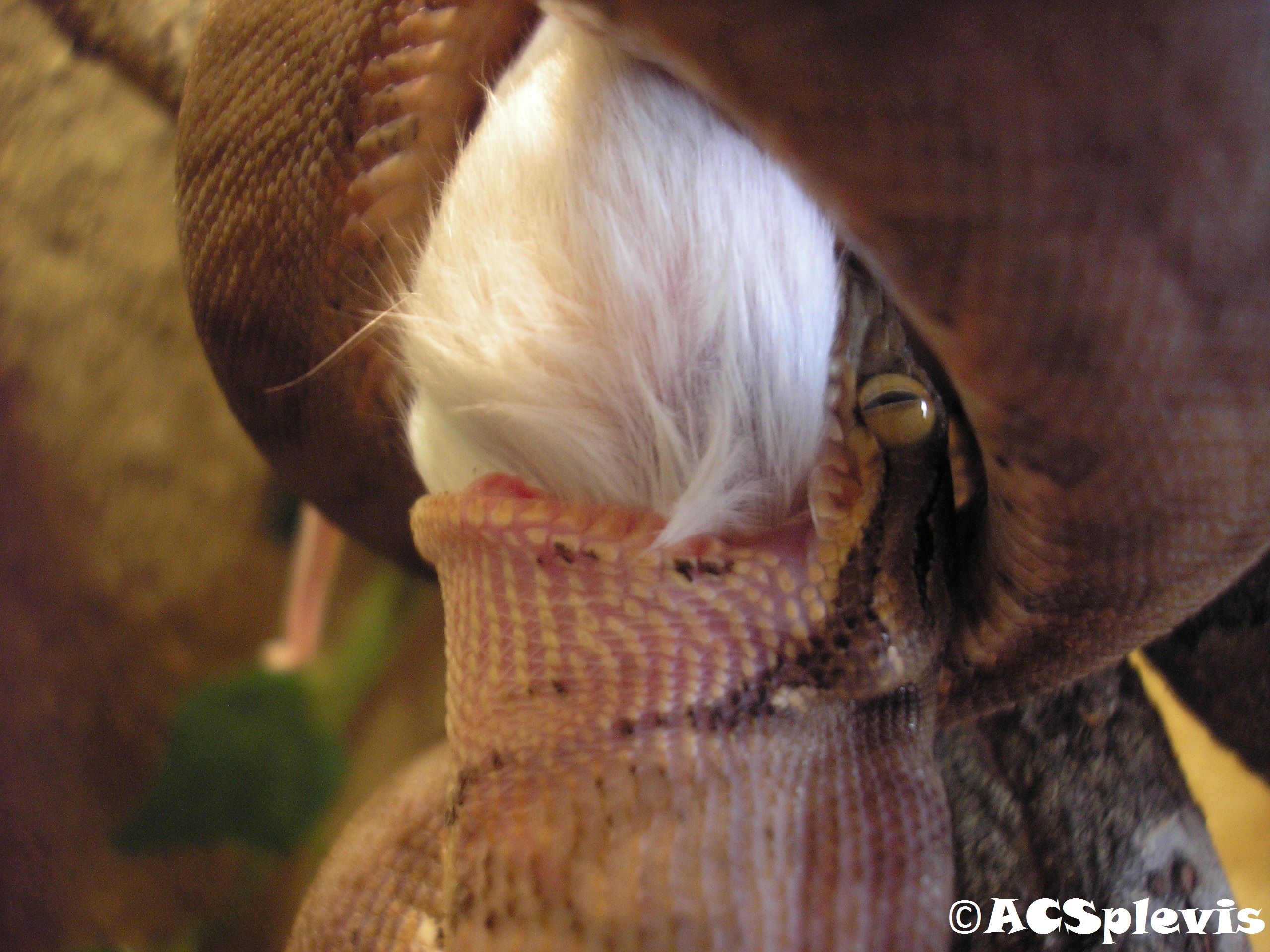 To, že je to proti zákonné, jsem nevěděl, ale prostě jsem to sem dal. Je to kořist jako každá jiná a třeba se i pár chovatelů inspiruje a raději hodí kotě, štěně atd. hadovi, než aby s ním hodil o zem, případně utopil. Ale žijem v ČR, tak jsem zvědav, kdy mě někdo bonze.