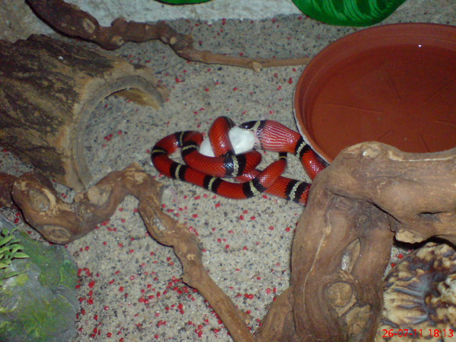 Přijde mi to krapet ,,zavádějící" nebo jak to přesně říct srovnávat tera s přírodou.Přeci jen v tom tera se snaží chovatel chovanci poskytnout co nejlepší podmínky aby mu chovaný exemplář nezahynul,neonemocněl.A tak proto se mi tam moc ,,nelíbil" ten substrát na té myši.Nerejpal jsem nebo tak něco jen jsem ,,upozornil" na to,že zrovna tohle nebude úplně ono... Já hady taky z tera nevyndavám,když je krmím.Ale podám jim to na místě,kde možnost toho že pozře potravu se substrátem je nejmenší.