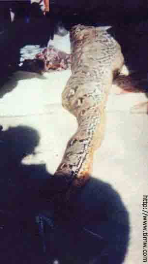 Jinak velkej had (bavme se omrizkach) by nemel problem sezrat cloveka, predevsim ty mistni, kteri na tom nejsou s vyskou nejak dobre:D Nekolikrat se stalo. Jinak i "slusne" stavenyho evropana by velka mrizkatice mela zvladnout podle me. Sice ramena jsou problem, ale kdyz by byl pootocenej a nelezel by na zadech, tedy ramenama by byl ve svisly poloze, tak je klidne mozny, ze by ho slupla celkem bez vetsich bez problemu. Muj nazor.)