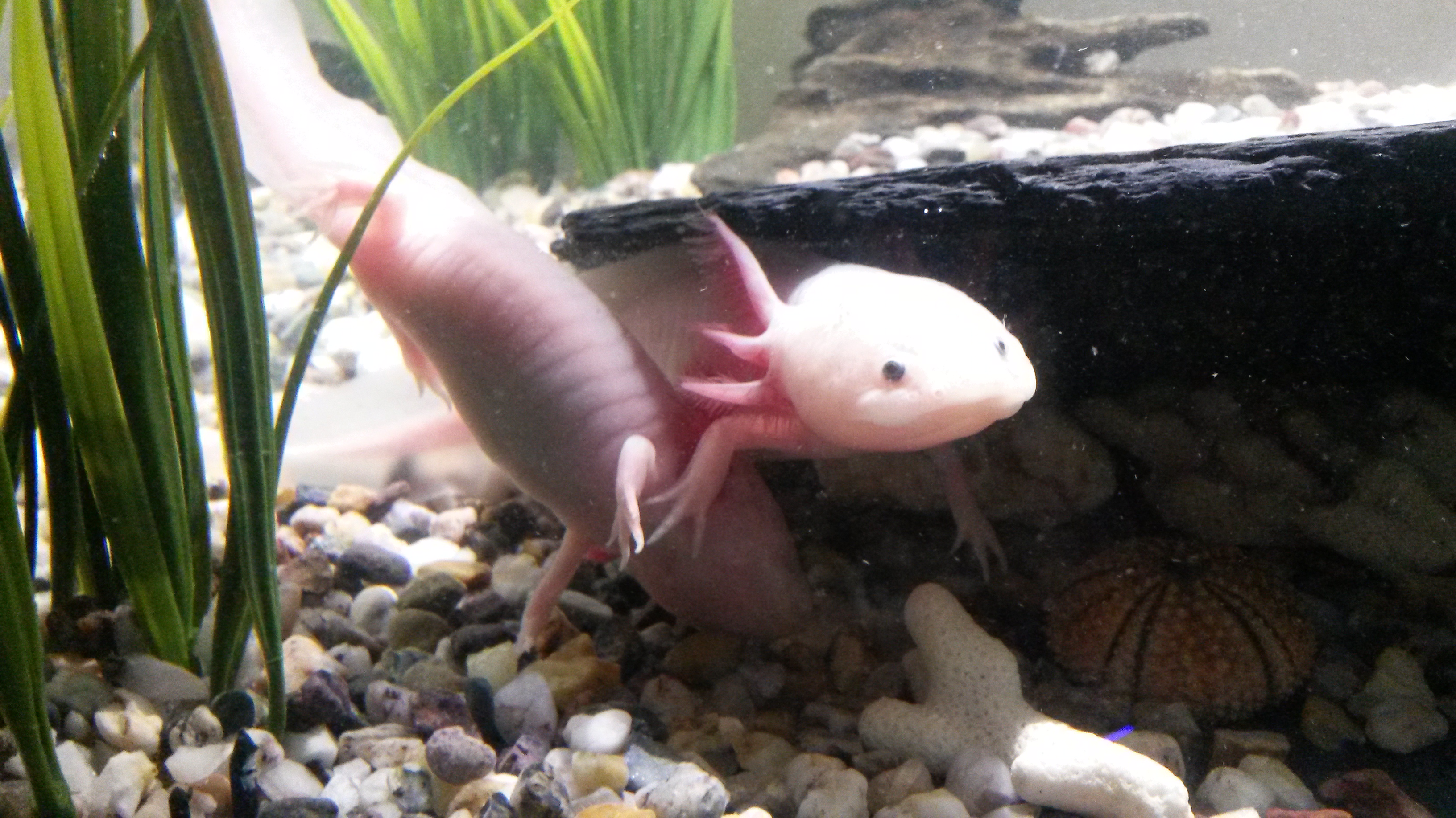 -delsi dobu nas trapi, ze pojidaji kameny ze dna. Nechtel jsem tam davat pisek, aby je to neucpalo, ale uz maji pul roku, vyrostli a kameny si pletou s potravou. Obcas si nacpou bricha kamenim tak, ze se ani nehnou a kameny jsou pres bricho videt. Kameny pozdeji nejspis vyplivnou, protoze uz je tam za dva dny nemaji. Jeden axik byl ze zacatku takovej mensi a byl otloukanek. Druhej mu ukousl nohu (ta sice dorostla, ale ted ma asi 10 prstu