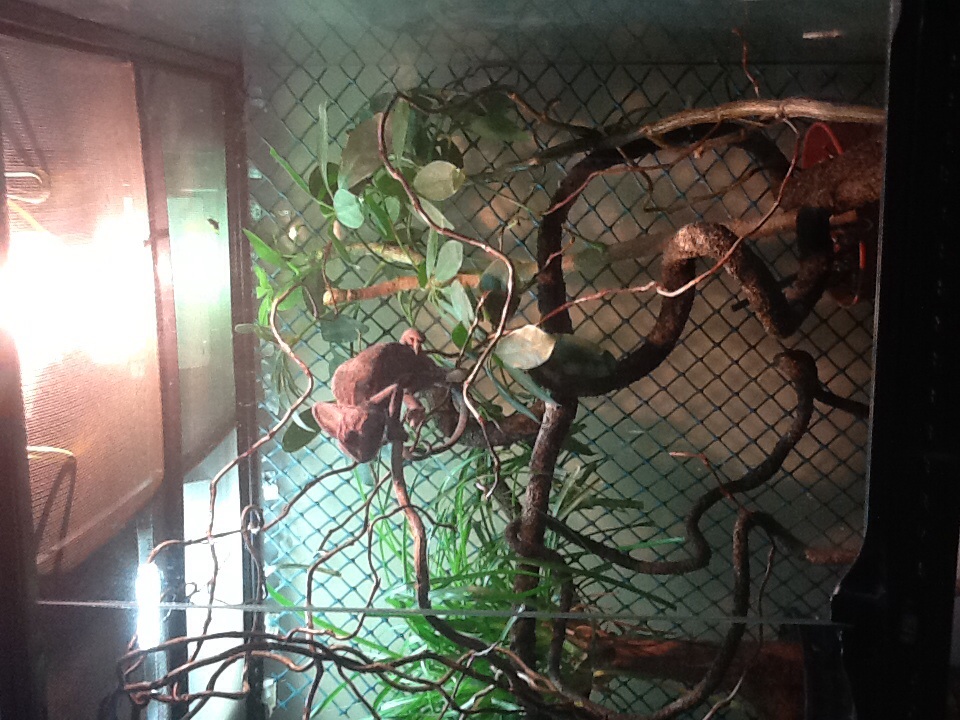 A to jako proč? Ta lampa tam je přesně z toho důvadu - aby pod ní chameleon mohl lézt a vyhřívat se. Zrovna jemeňáci takhle trávěj velkou část dne.