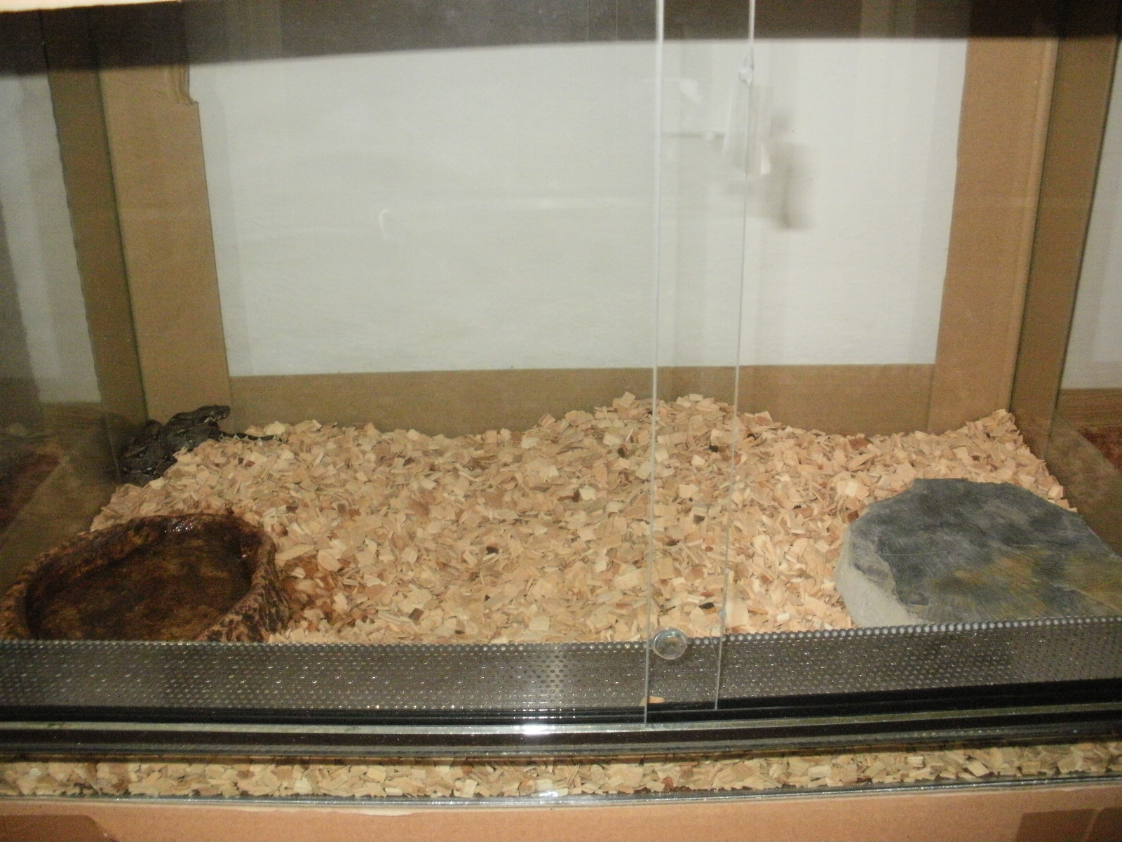 Jak říká cejna, na 99,99% je to topný šutr. Přeměřit teplotu, pokud bude málo, přidat žárovku + jeden vlhký a jeden suchý úkryt. Ostatní cimprdlátka jsou pak jen spíše, pro naše oko.