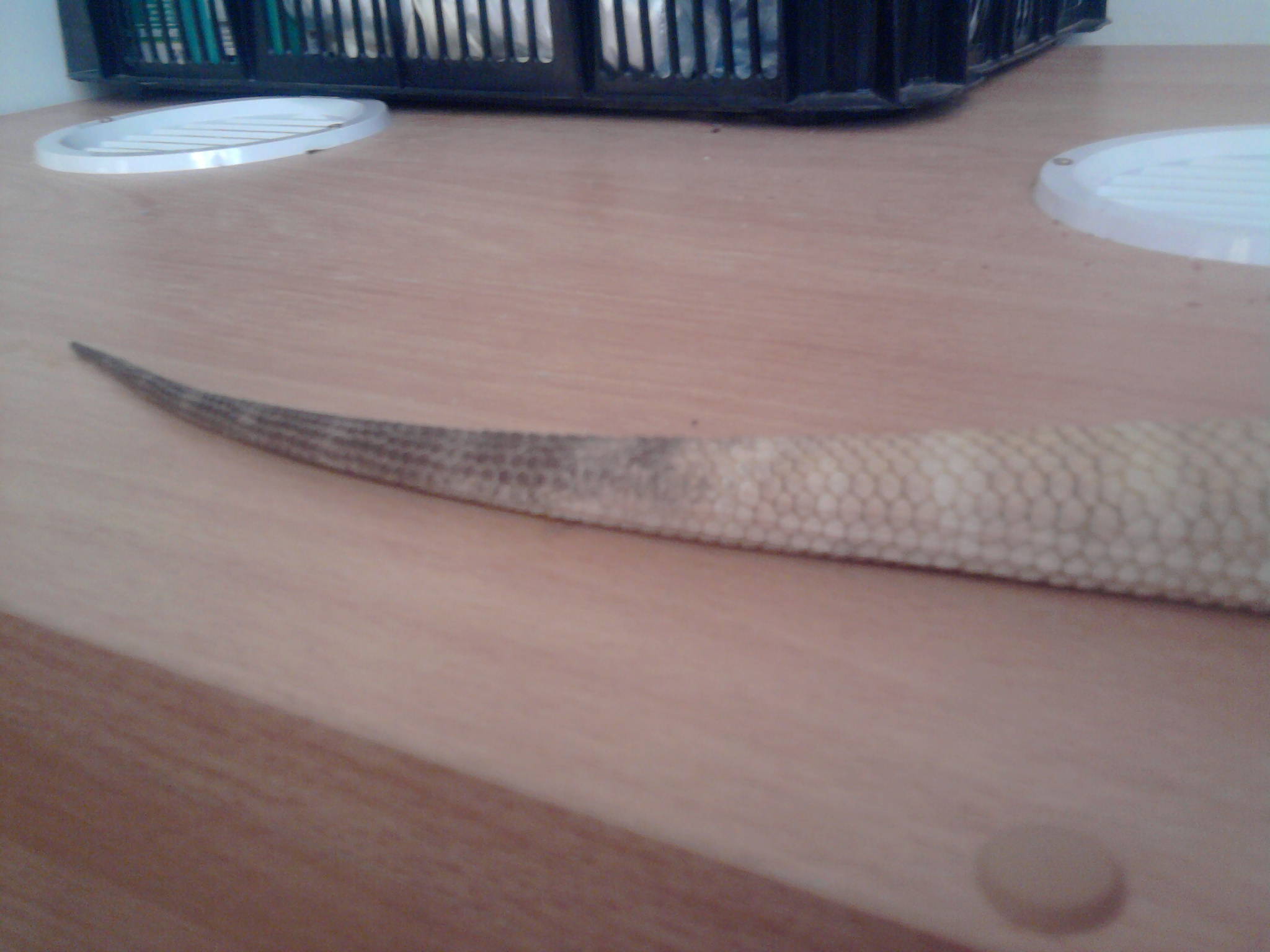 také bych potřeboval poradit, mám doma něco málo přes měsíc malou agamku, zpočátku sem ji nechal si zvyknout v terárku a posledí dobou sem ji začal brát do ruky a všimnul sem si zkřiveného ocásku v jednom místě (viz foto), podle toho, co sem se tu dočetl by se mohlo jednat o rachytidu (omlouvám se, jeslit jsem to špatně naspal), ale pokud tomu tak je, tak už nevím, co víc udělat, UV záření má (Lucky reptile compact UV Sun), krmím ji švábi, které každý den obaluji ve směsi Roboran H + nadrcená sépiovka, dneksa sem ještě dokoupil Nutrimix pro plazi, tak zkouším i ten, jinak podmínky by měla mít dobré (Na výhřevném místě 44°C, jinak se teplota pohybuje od 36 - 28°C, záleží na místě v terárku, agamka je jinak v pohodě, aktovní, žere, ale tento problém bych chtěl řešit hned na začátku a ne čekat, jeslti ten nutrimix nějak pomůže, snad je ještě čas.