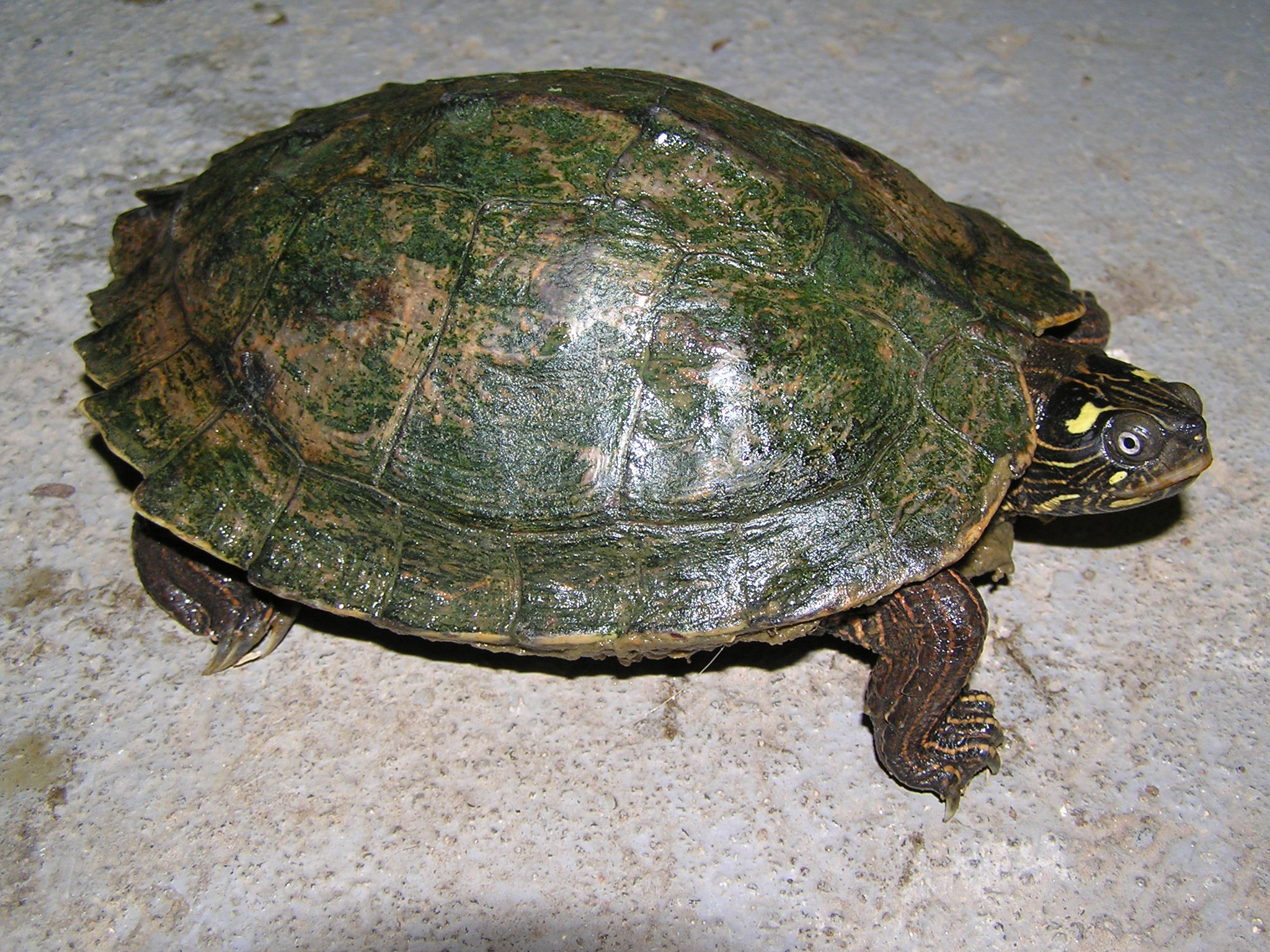 spíše pro zajímavost exhumuji toto vlákno- adultní 0,1 Graptemys ouachitensis vylovená o víkendovém výlovu kaprů ze sousedovo rybníka, kde byla údajně min. 10 let (od doby, kdy ji tam začli pozorovat a následně vytahovat při výlovech), velikost karapaxu cca 20cm.