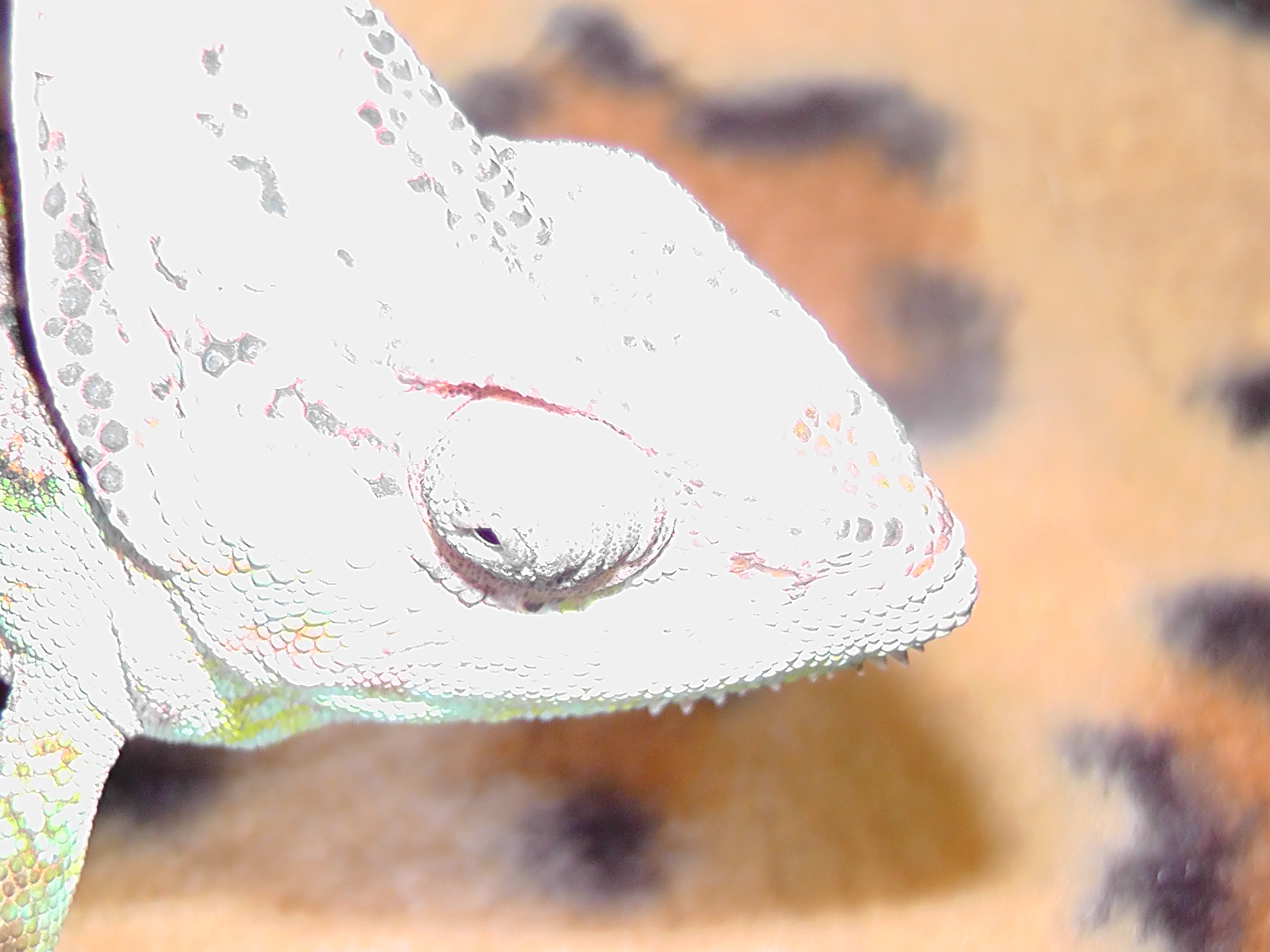 jak bych to rek pravé oko má nafouklé a připadá mi zahnisalé:(..je asi 7 měsíců starý a asi 13-15 cm dlouhý (bez ocasu) terárko je v80 š50 h40 coz je k jeho velikosti vyhovující zatím..cvrčky a sarančata dávam do vitamínu reptive na vápník..když ho rosím tak to oko zavře ale ne víky ale jakousi blankou a měl bílou zorničku..jinak vidí normálně a potravu dobře vidí a stříli přesne..(viz foto)omlouvám se za blesk na fotkách..