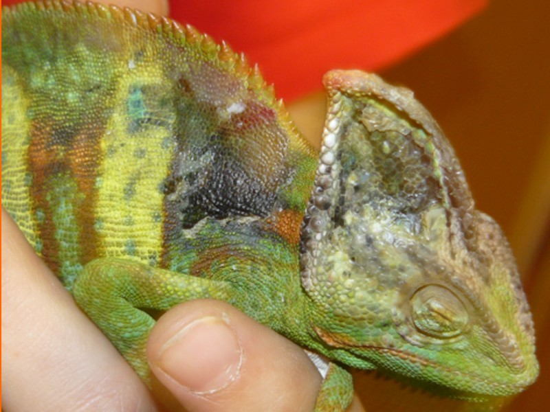 Zdravím, můj chameleon má zhruba 5 dní plíseň. Veterinář mi doporučil mast CANESTEN, která nic nevyřešila. Přikládám foto, pokud by někdo věděl co dělat prosím pište. Díky