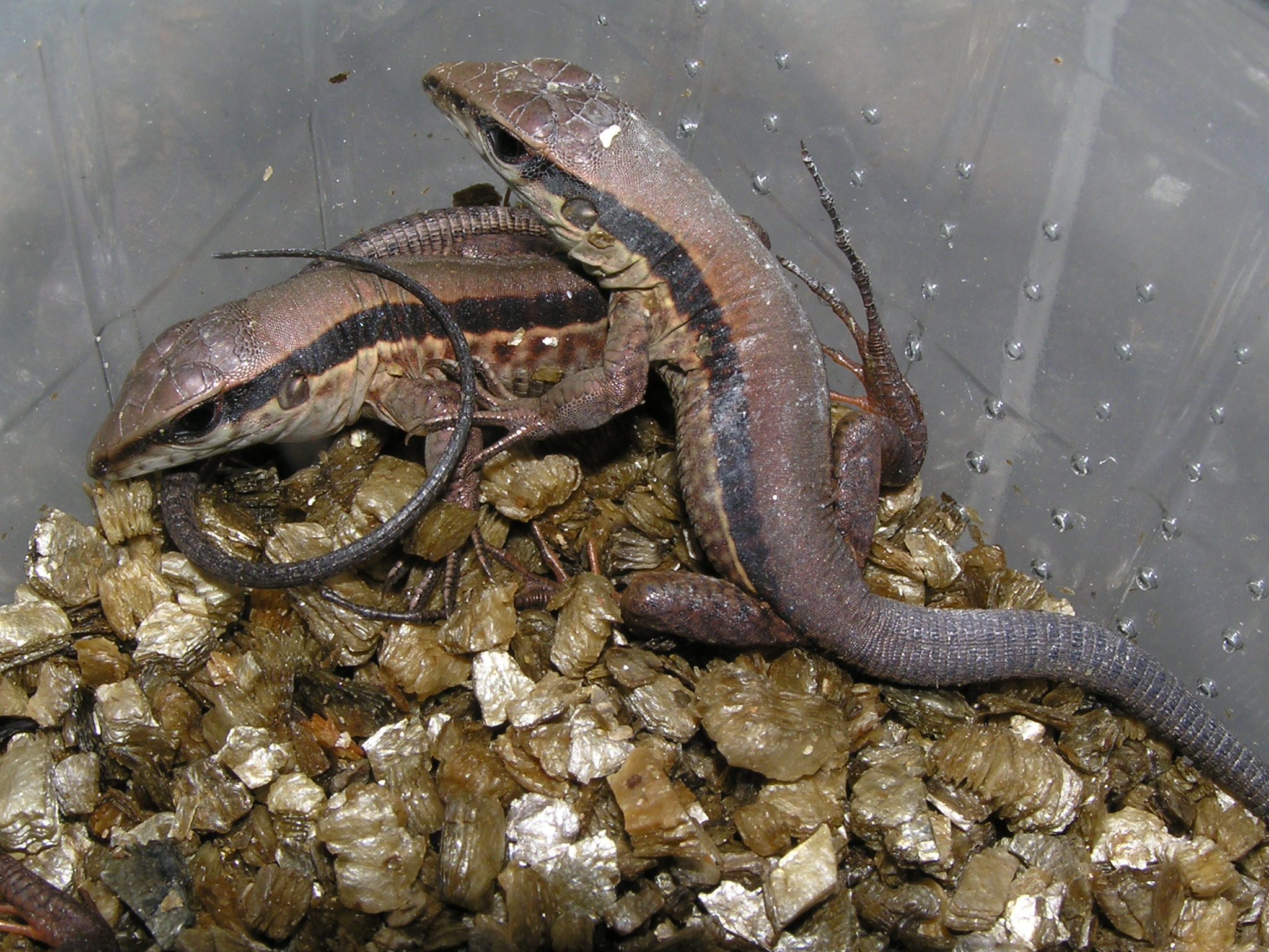No přeci tyhle :-D. Ale pokud myslíš druh, tak Ameiva ameiva :-)