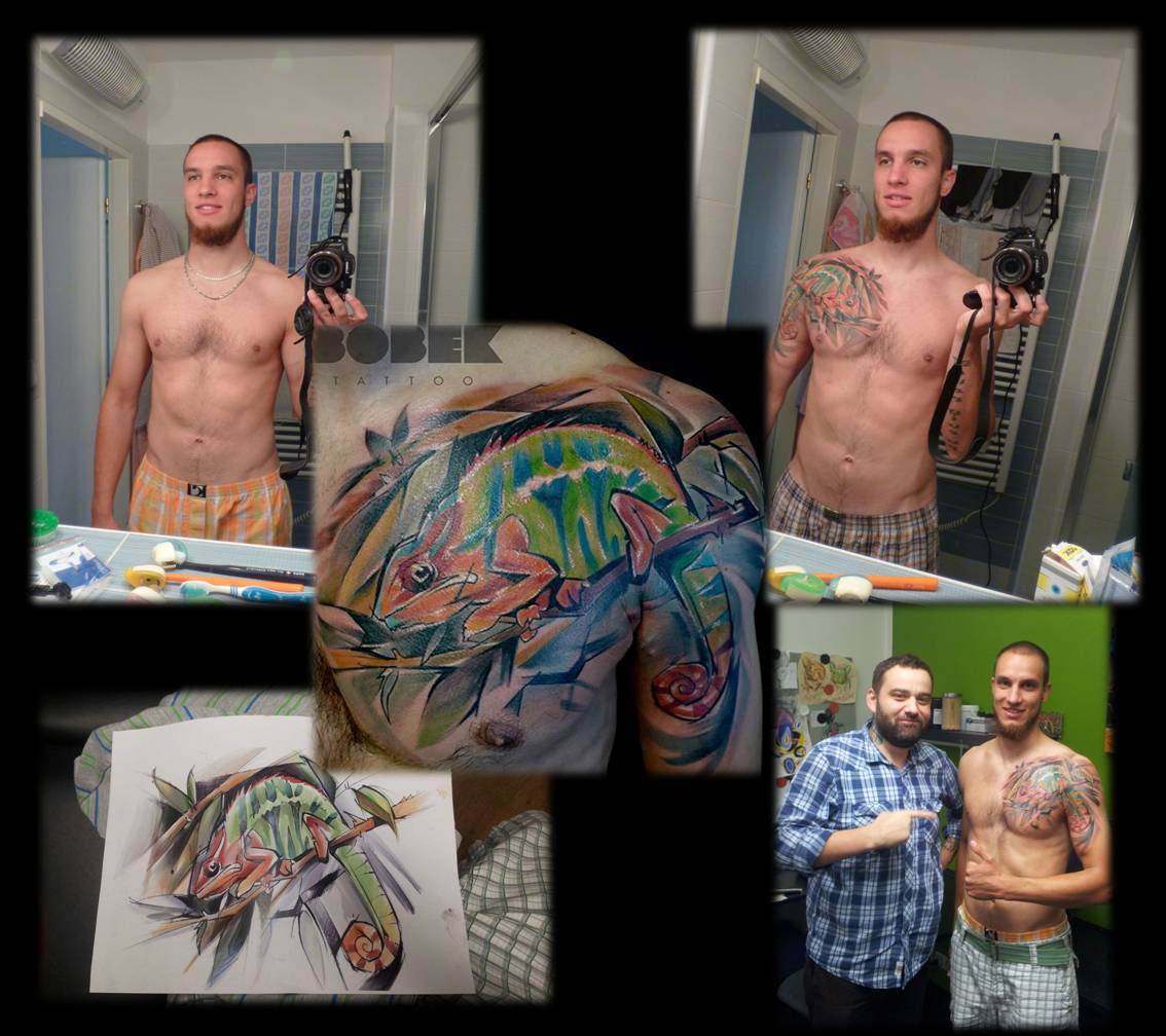 Tak já jsem velký fanda tetování, od pasu nahoru si myslím je to už i dost znát Tady jedna moje kéra s terarijní tématikou. Podotýkám že to není můj chovanec.