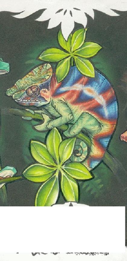 Chameleon v tomto stylu nebo i jiném obdobném by mohl vypadat zajímavě