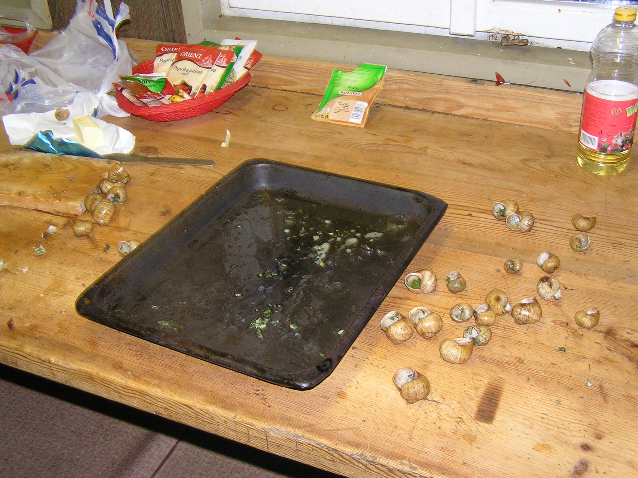 3) Hnusna prace - kuchani. Uzkou vidlickou nebo necim podobnym vytahnout z ulity, vnitrnosti nad nohou uriznout a zahodit.