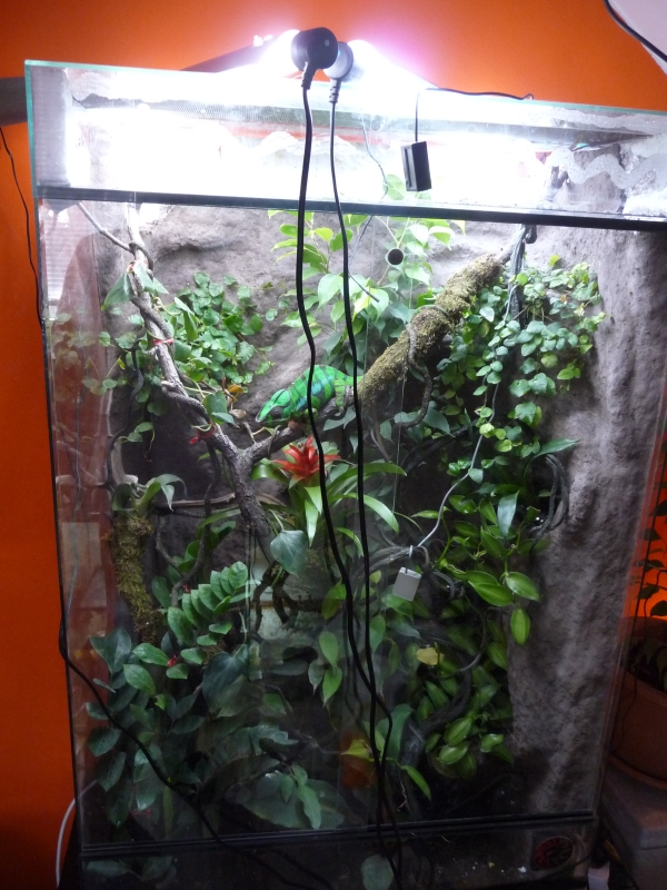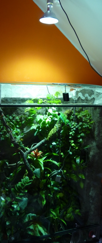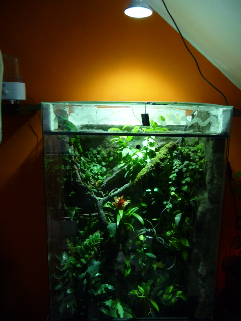 Ono je to takhle na pohled matoucí. Řekl bych, že to bylo foceno už večer, kromě toho ta nádrž je dost zarostlá, je tam spousta věcí vrhajících stín, takže to pozorovatele plete. Mám dojem, že pokud bych vyfotil vlastní terárko se SolarRaptorkou, asi by to vypadalo stejně, přitom mám pocit, že svítí intenzivně.