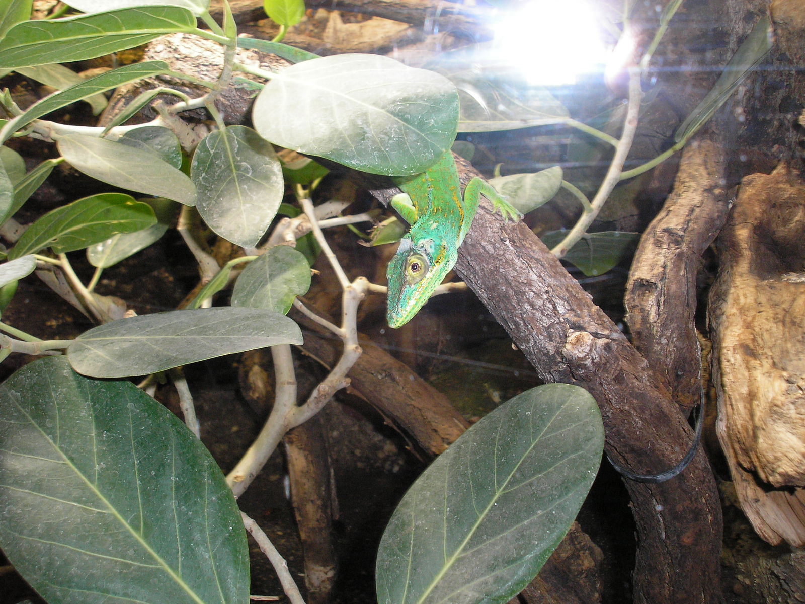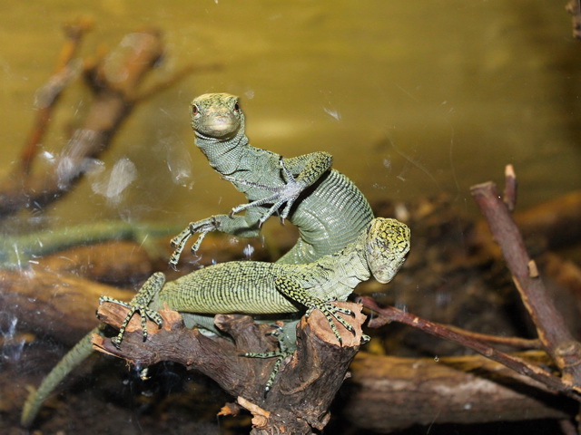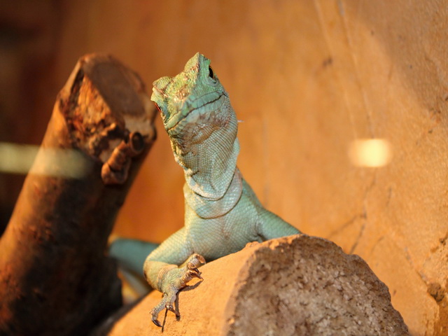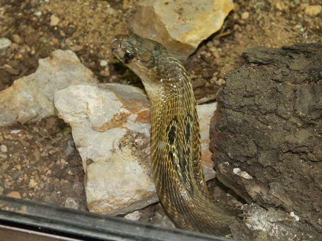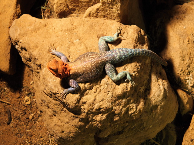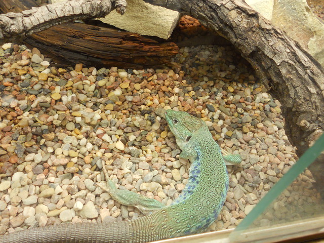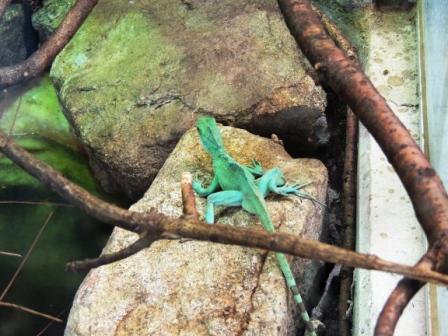 , některé z nich jsem dosud viděla jen na fotografiích či videích ( zmije , kobry , chřestýši , chřestýšovci , mamby aj. ) , s výbornými popisky . Samozřejmě v zoo byli i ještěři a v zastřešeném atriu budovy krásná venkovní terária - želvária a tropickou teplotou . Bohužel jsem neměla fotoaprát a ani mnoho času , jen pár letmých fotografií z mobilního telefonu ( důvod se tam někdy vrátit ) , například :