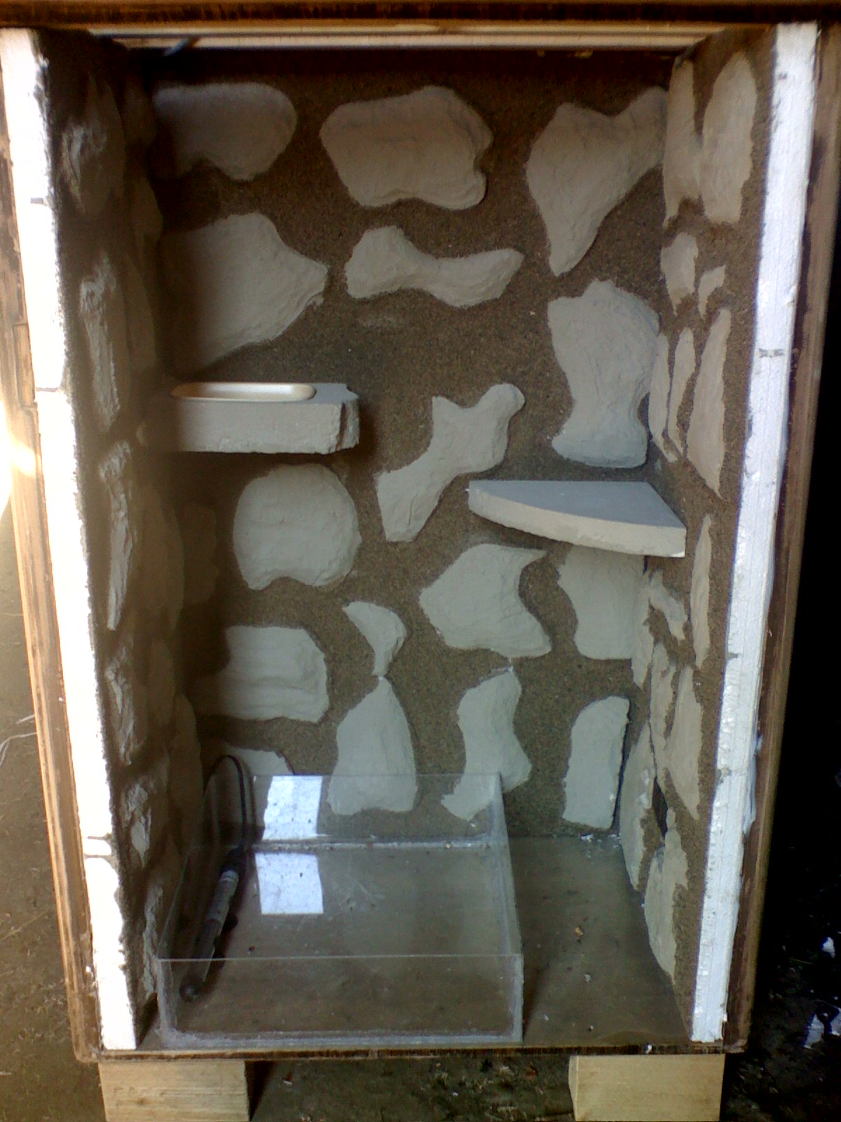 Na první fotce je terárium bez větví a se skoro hotovým pozadím a s jezírkem které tam bude na pevno