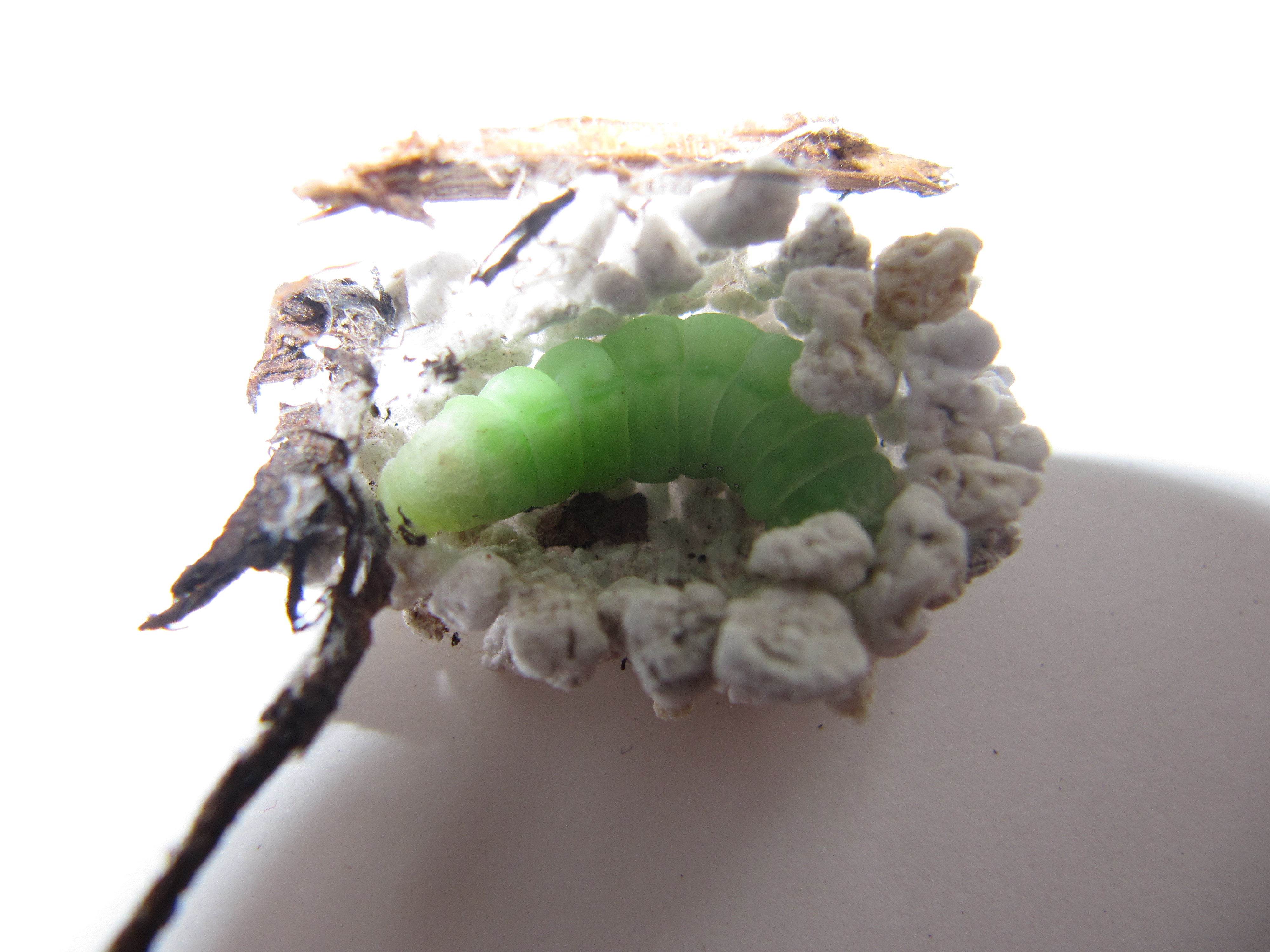 Před pěti dny jsem našla pod javorem (klen) housenku. Je zelená a na zadečku má trn. Už se mi zabalila do "hedvábí" ale já nemůžu zaboha přijít na to, co je to za druh. Buhužel jsem si ji nevyfotila než se mi zabalila a nechce se mi (a řekla bych že se to ani nemá) ji rozbalovat. Nenašla jsem ji nikde a nemám žádnou odbornou literaturu. Proto bych se vás ráda zeptala jestli mi někdo nepomůžete? Kdybyste přeci jen na fotce trvali vyfotila jsem ji už zabalenou, ale z toho to moc nejde poznat...