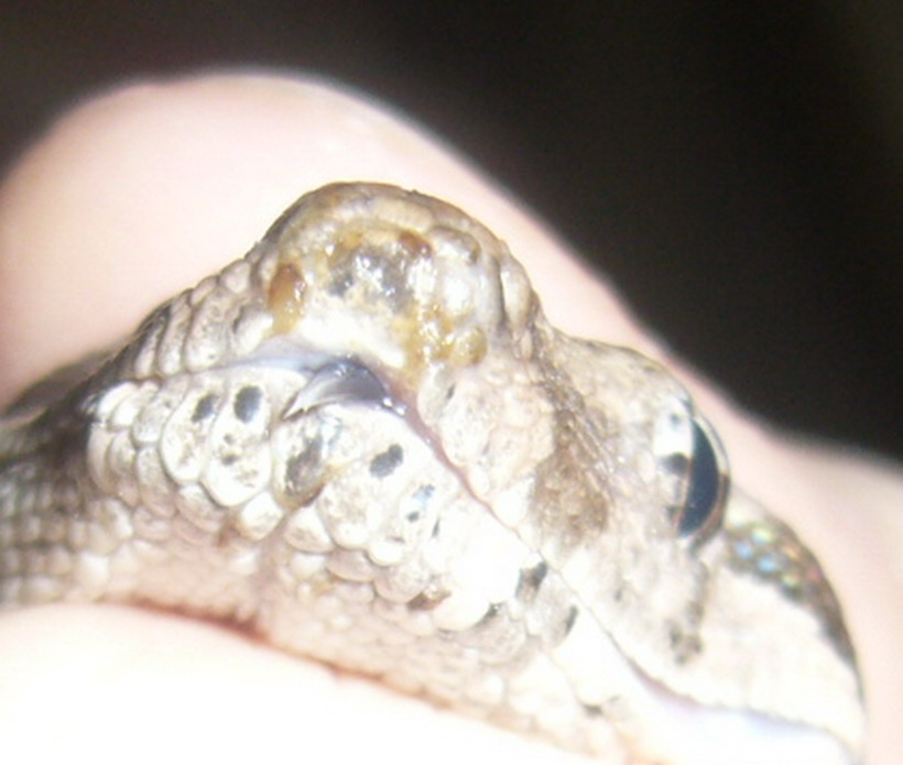 pořídil jsem si dvouměsíčního Boa constrictor a na čumáku se mu udělaly takové skvrny viz. přiložené foto.Nevíte co by to mohlo být? Hodně jsem si o chovu načetl i tady na poradně, ale nikde jsem nenašel co by toto mohlo být. Na dotek je to vrdé. Má to jen na čumáku, nikde jinde.