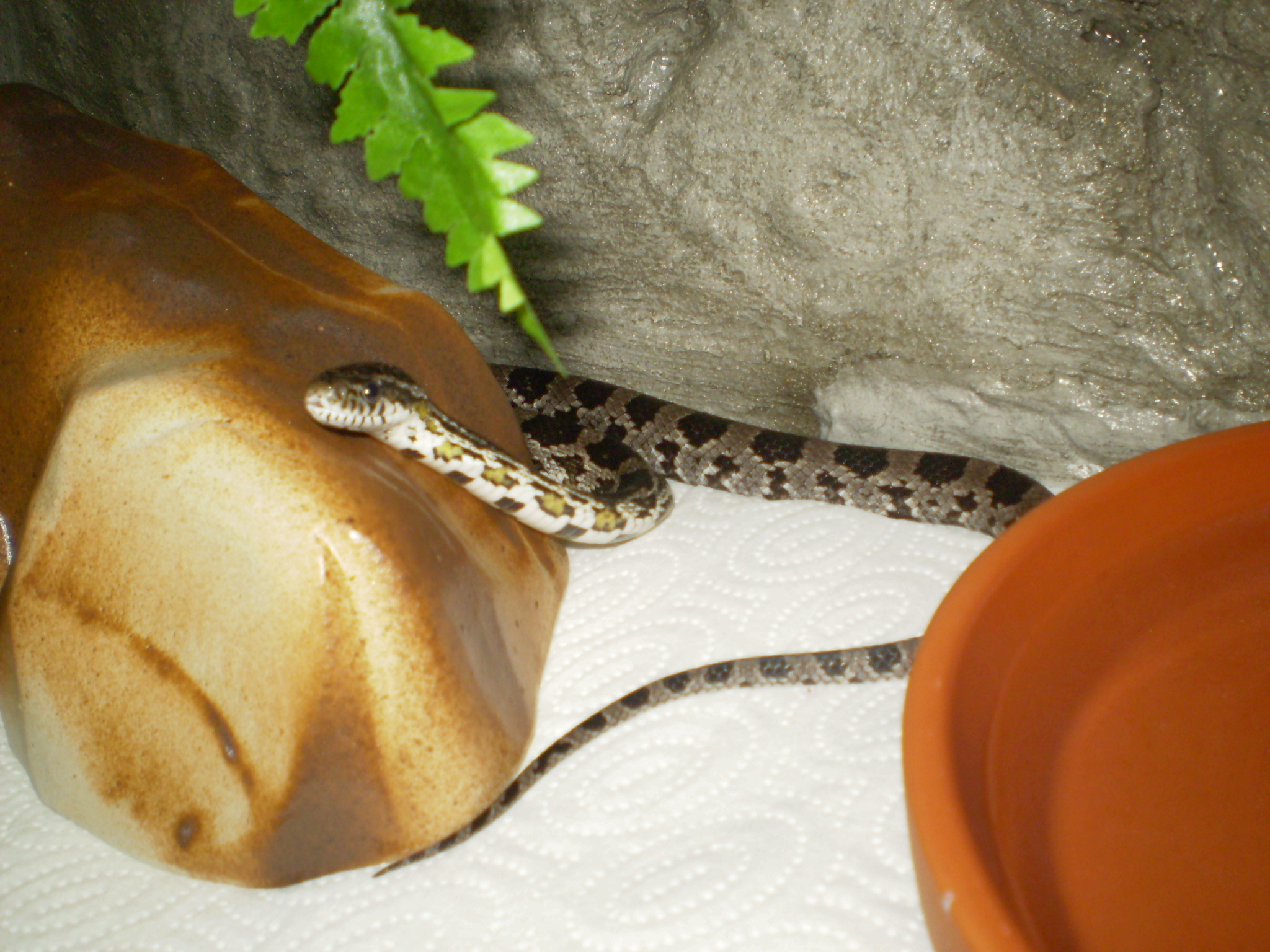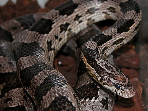 Řekne mi někdo, jaký druh užovky by tohle mohl být? Já tipuju nějakou barevnou formu obsolety nebo jiného bežněji chovaného druhu, kolega tipuje něco nezvyklejšího, jako třeba Pantherophis emoryi... Hada nám v sobotu dovezli do práce městští strážníci, kteří ho odchytili kdesi ve městě (OL) u popelnic. Za jakýkoliv determinační tip díky.