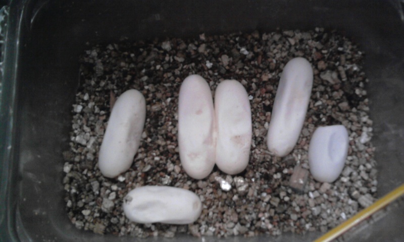 Nejde o kvalitu fotky, ale o stav. Moc malá vlhkost a navíc ji ani neměly jak přijímat, kdyžs je nezahrábl, ty vejce na pár vyjímek asi byly oplozené, ale máš je uplně vyschlý. Tohle se obávám že už asi nerozchoděj, měls tu fotku dát hned. Nicméně můžeš zkusit zahrábnout je do dostatčně vlhkého substrátu, možná se ještě napijou- opatrně je vyndej tak, abys je omylem neotočil, pokud tam je toho vermikulitu málo tak ho dosyp, zalej ten vermikulit vodou, nech ho dobře nasát a zbytek vody slij. Voda nesmí zůstat stát na dně. Pak do něj prstem udělej rýhy na velikost těch vajec tak, aby byly skoro celé zahrabané a koukaly jim jenom vršky asi tak z 1/5, dej je tam a krabičku přikryj víčkem, aby byla vyšší vlhkost vzduchu. Uvidíš, možná se vejce ještě napijou a budou fungovat, ale moc šancí tomu nedávám. Pokud se to povede, tak se ty prohlubně vyplněj a vejce zůstanou pěkná. Pokud nepovede, tak do pár dnů zkolabujou a zkazej se.