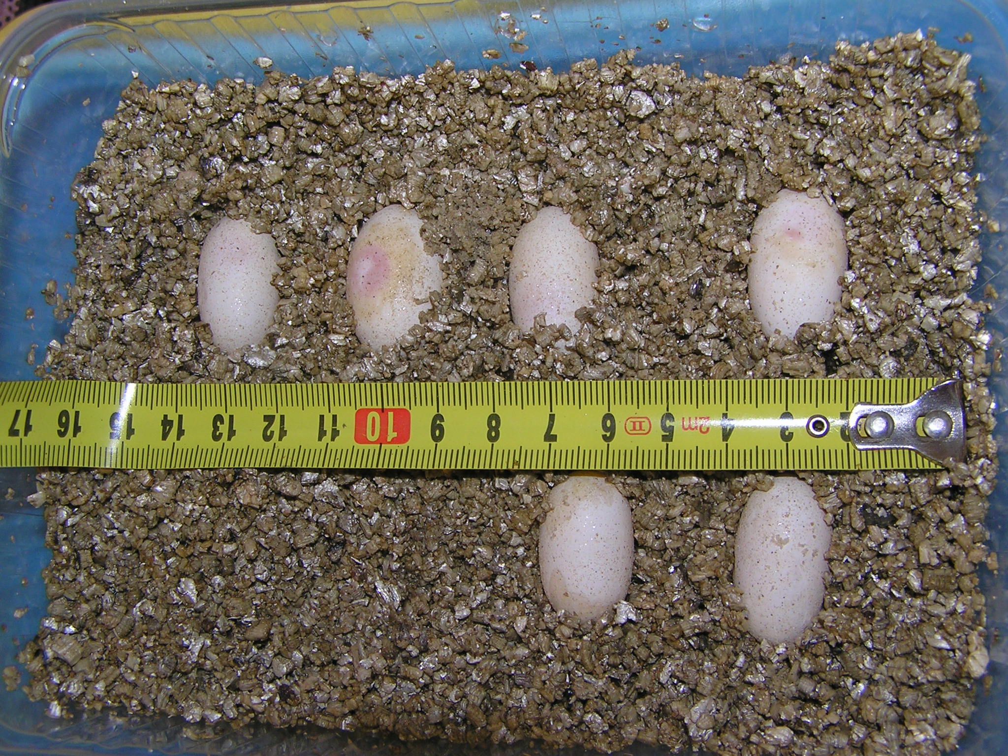 hodim sem nějaké ilustrační foto, ale klidně ty vejce můžeš ještě víc zahrábnout, když je máš takhle vyschlý. A koukni se na barvu toho vermikulitu, vlhkost se dá poznat i od oka podle odstínu.