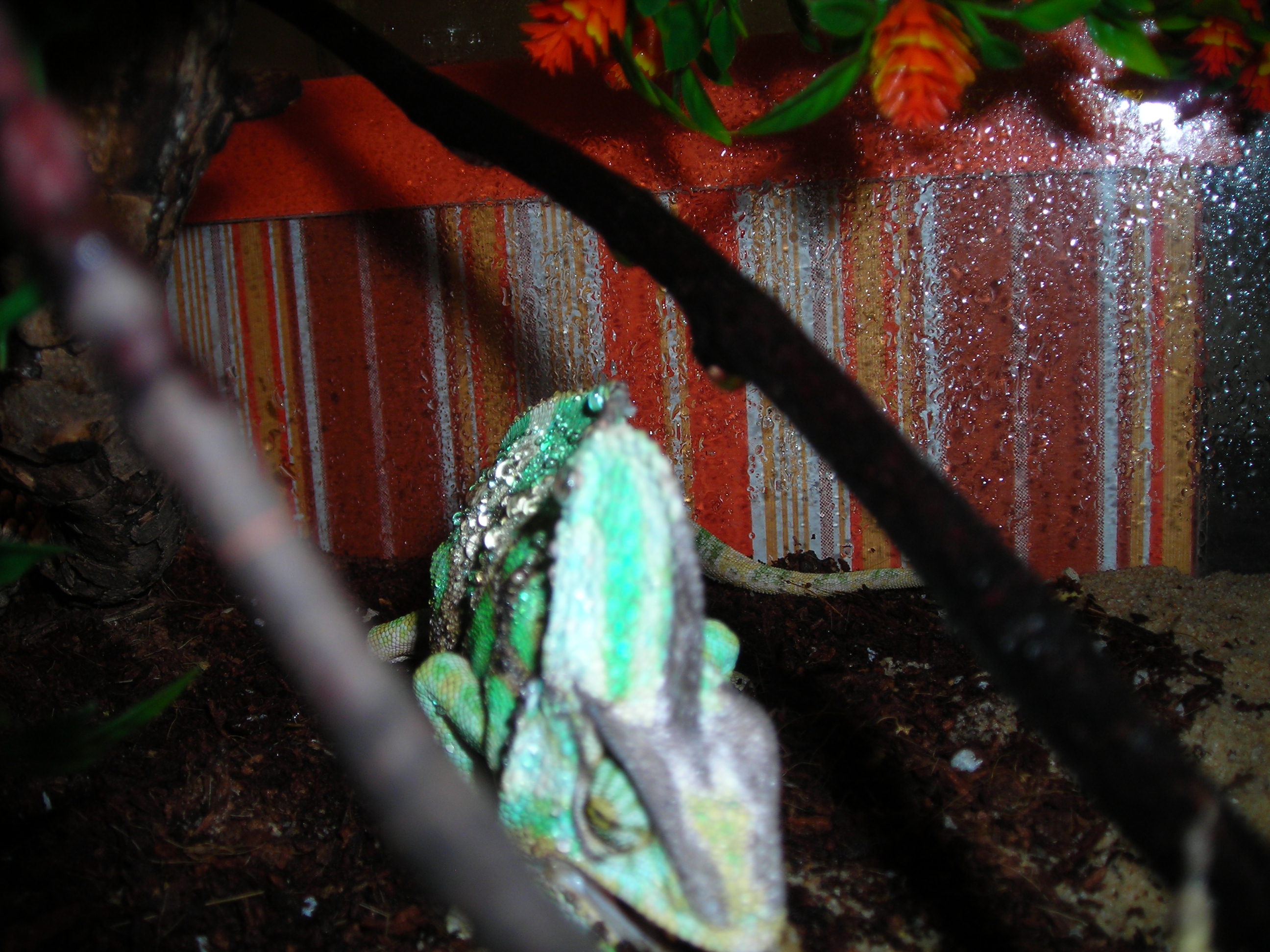 máme chameleona už přes dva a půl roku , celou dobu byl živý a dobře žral. Včera odpoledne začal být "divný" měl hodně tmavou barvu , pořád syčel i když v teráriu nikdo ani nic nebylo . Večer slezl na zem ,kde zůstává . Občas se pohne,ale to pouze o pár centimetrů . Většinou má zavřené oči , občas pootevřenou tlamičkua taky mi příjde že bříško má mnohem větší než obvykle. Již tři dny nepříjmá potravu , kropení probíhá dvakrát denně . Nevíme co s ním ,může být takhle se ještě nikdy nechoval . Za odpovědi moc moc děkujeme . Přikládám fota chamíka na zemi .