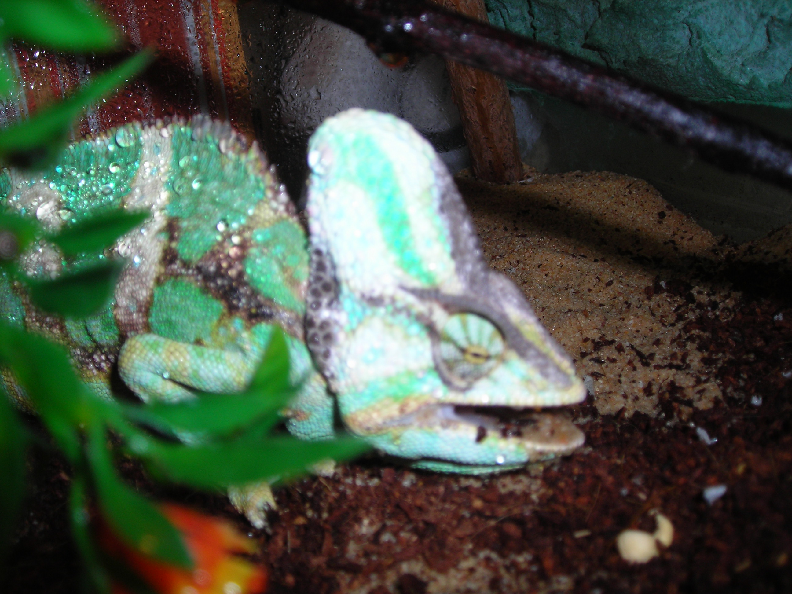 máme chameleona už přes dva a půl roku , celou dobu byl živý a dobře žral. Včera odpoledne začal být "divný" měl hodně tmavou barvu , pořád syčel i když v teráriu nikdo ani nic nebylo . Večer slezl na zem ,kde zůstává . Občas se pohne,ale to pouze o pár centimetrů . Většinou má zavřené oči , občas pootevřenou tlamičkua taky mi příjde že bříško má mnohem větší než obvykle. Již tři dny nepříjmá potravu , kropení probíhá dvakrát denně . Nevíme co s ním ,může být takhle se ještě nikdy nechoval . Za odpovědi moc moc děkujeme . Přikládám fota chamíka na zemi .