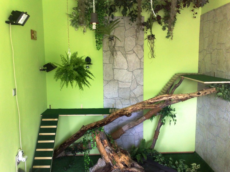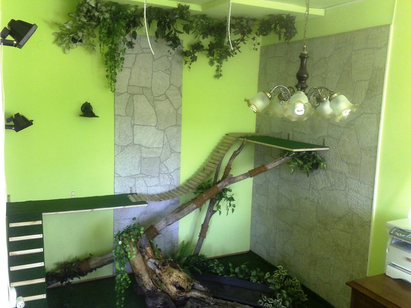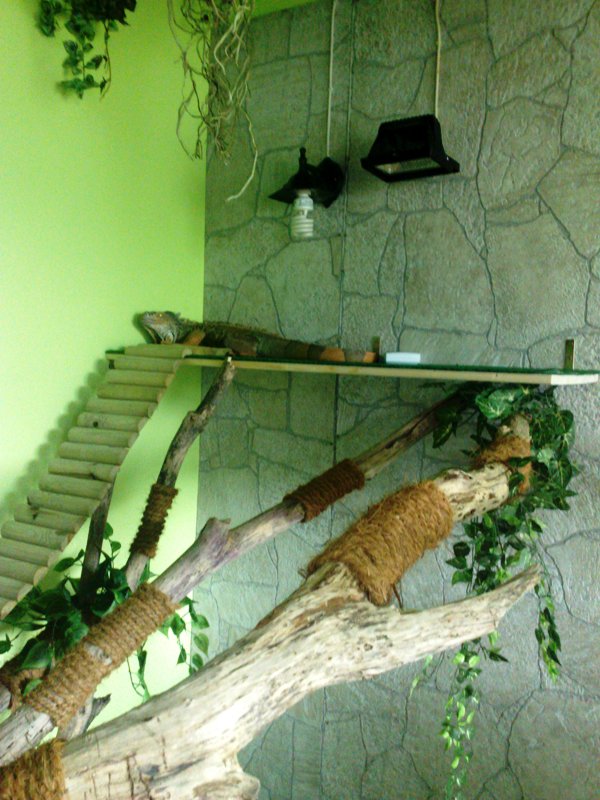 Tie kable, casovac, rozvodky atd by bolo najlepsie schovat tak, aby ich bolo cim menej vidiet. Tak isto svetla ktore su natiahnute zo stropu. Clovek nikdy nevie, a pri leguanovy a jeho vahe zvlast.