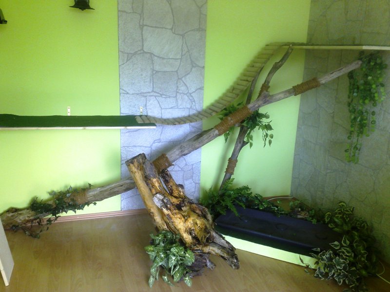 Tie kable, casovac, rozvodky atd by bolo najlepsie schovat tak, aby ich bolo cim menej vidiet. Tak isto svetla ktore su natiahnute zo stropu. Clovek nikdy nevie, a pri leguanovy a jeho vahe zvlast.