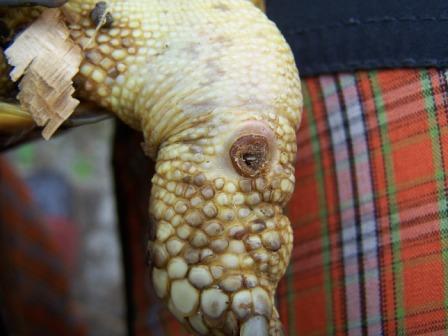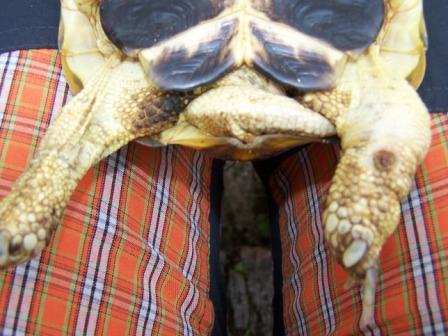 Ahoj, právě jsem zjistila, že můj želvák má oteklou levou zadní nohu (v místě kloubu). Na fotce je vidět hnědý flíček...už dříve se mu tam udělal, pravděpodobně se někde poranil, ale až teď mu otekla noha a v místě toho flíčku se vytvořila taková "zátka". Mám ho celodenně venku, krmen je pampeliškami a je neustále aktivní. Mám se pokusit tu "zátku" nějak odstranit a natřít betadine mastí, nechat tak nebo raději vyhledat veterináře? Děkuji za rady.