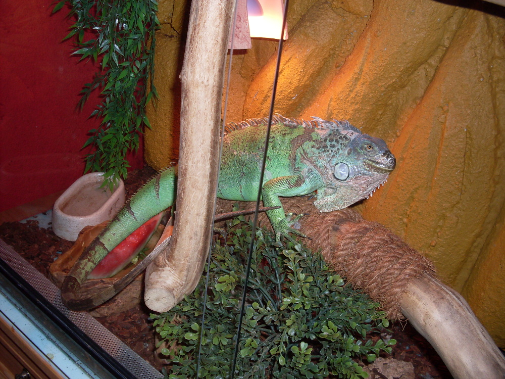 Pani rikala neco pres rok a pul no...a v terariu je sama...Ta nase(druha) je s v terarku s mensim leguanem, ktery vypada na samce. Ale opravdu se tak nechova, bude nejspis ten podrizenej chudak..