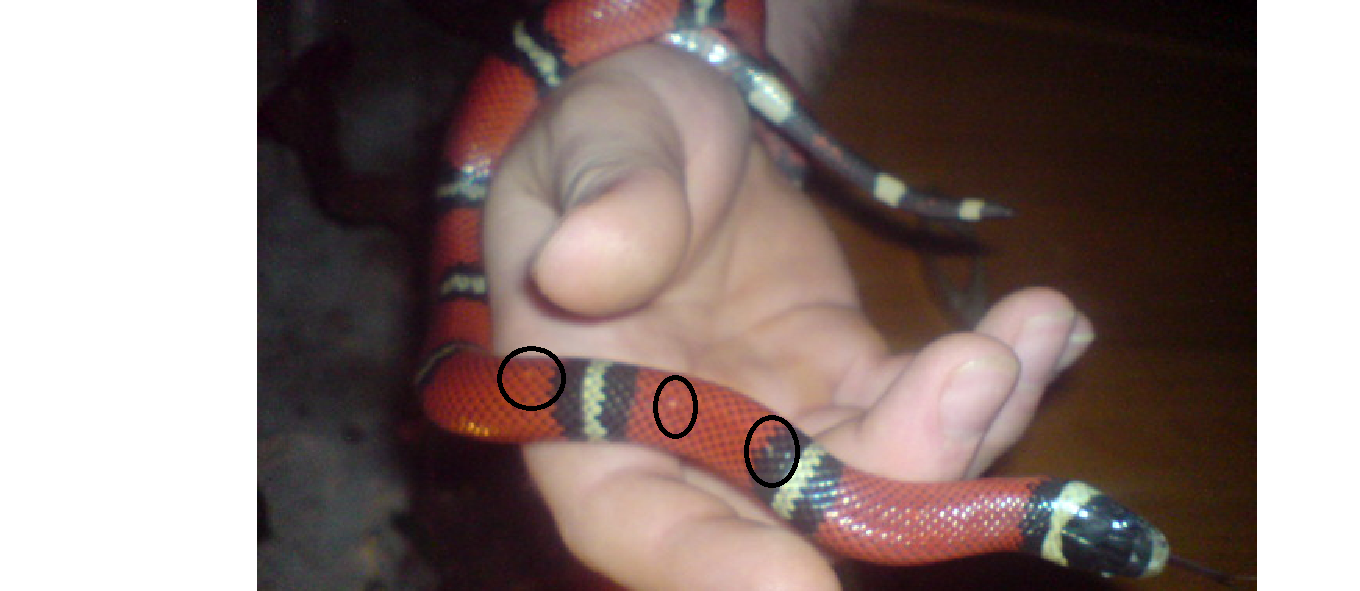 Zdravím, tak hadice už skoro 4 týdny odmítá potravu, navíc její aktivita od středy klesla na 0. Včera jsem ji výtáhl a zdá se být v pořádku. Jenom furt nevím proč ji na 1/4 těla od hlavy, jak kdyby sem tam ji chyběla šupinka. Může to něco znamenat??