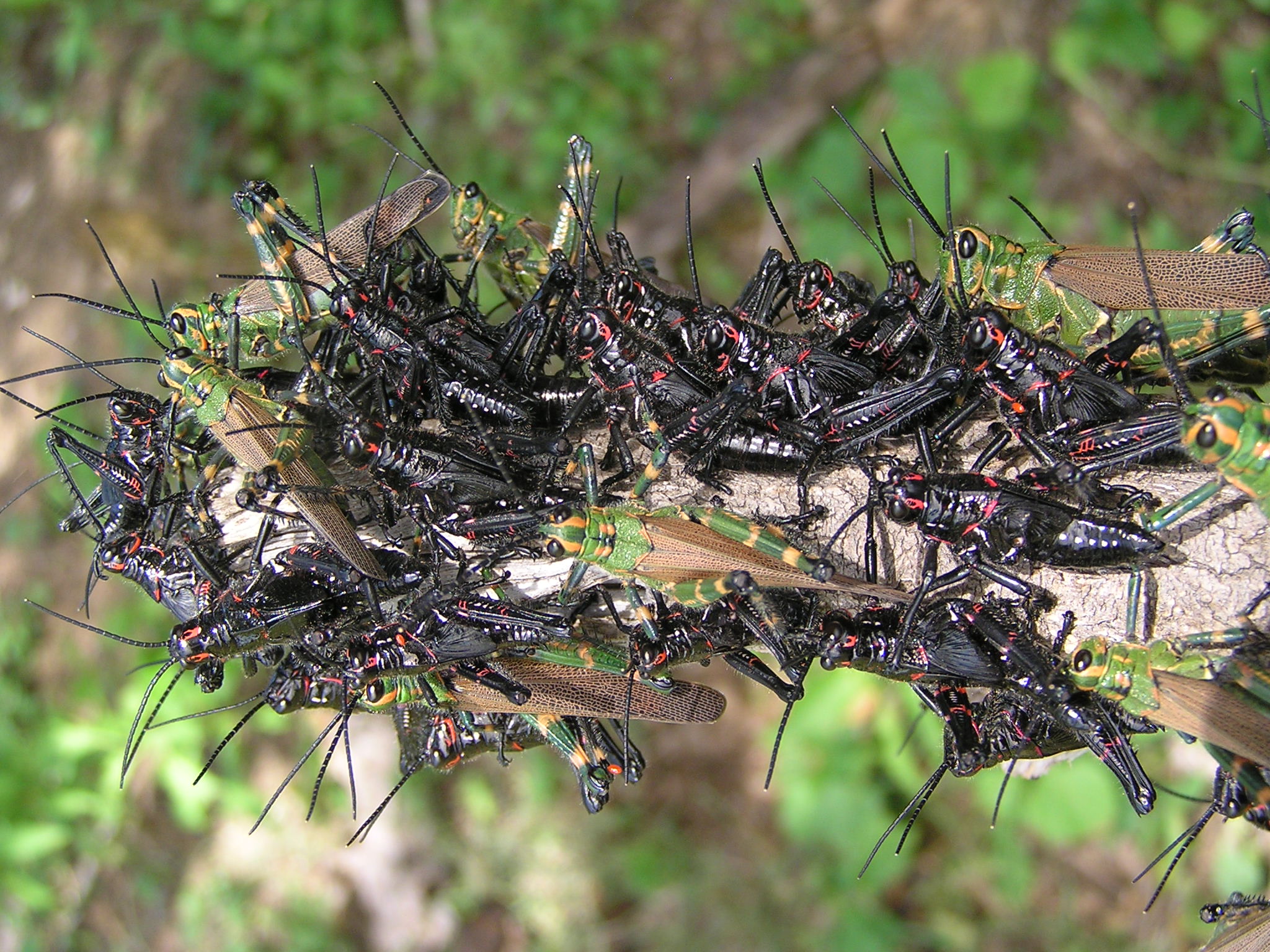 V akva-tera jsme chovali velmi pěkně zbarvené jihoamerické saranče r. Tropidacris (nymfy velmi pestře zbarvené - jedík, imaga pak pěkně sytě zelená), chov probíhal v klasickém teráriu cca 70x40x40 cm, dole vrstva kypré zeminy nebo spíš krabice se zeminou, kam kladli, krmení převážně ostružiníkem a tuším, že i něco živočišné složky a nějaká ta zelenina, ale podrobnosti bych musel doptat u kolegů. Nicméně šance na sehnání je asi větší než u těch Meldovo vysněných (mimochodem, připadá mi na té fotce z odkazu jako nymfa, takže pokud to tak je, tak zřejmě dospělci mohou vypadat střízlivěji podobně jako tomu je u těch Tropidacris sp.).