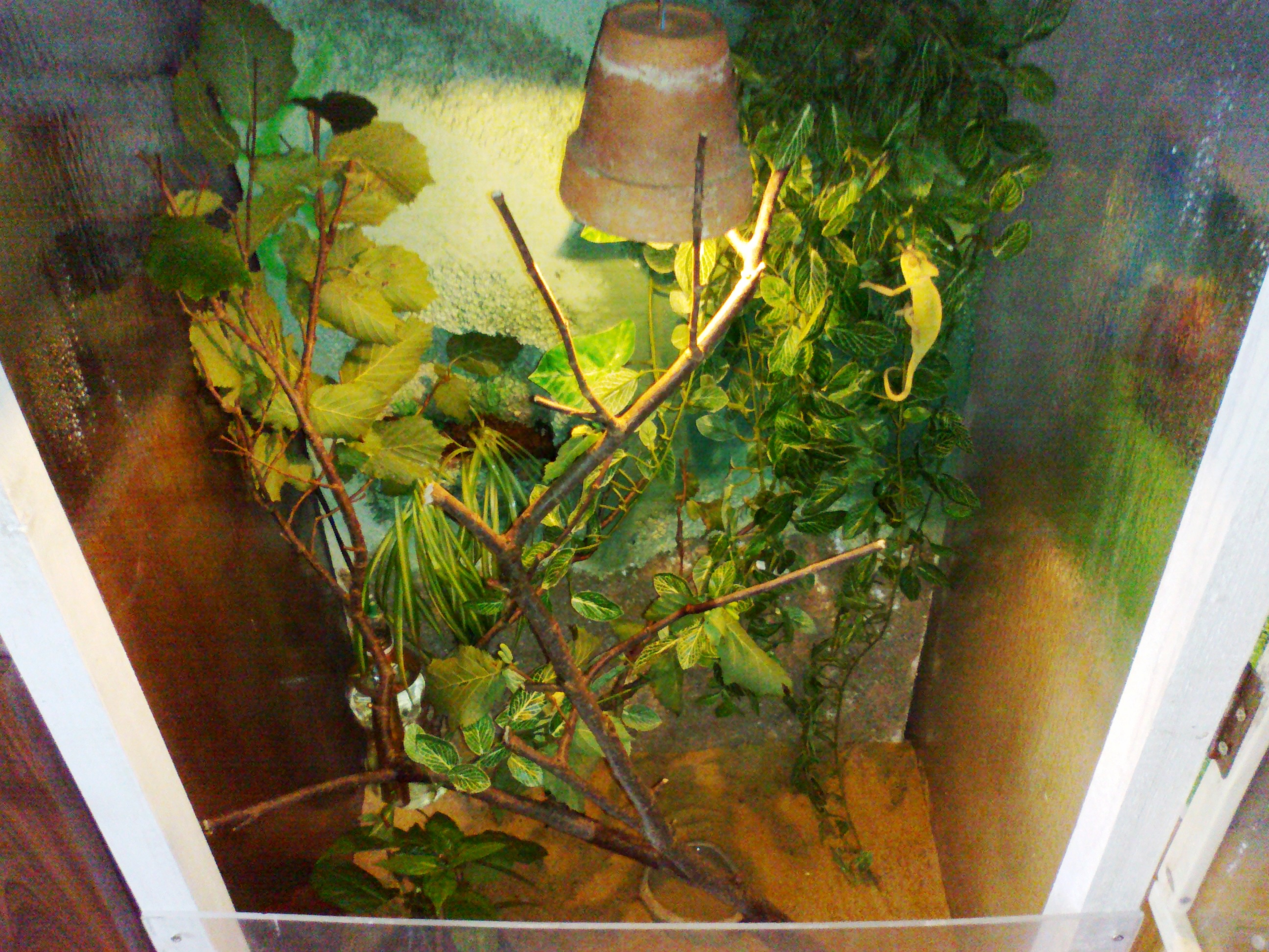 Je to strašně zapařený (aspoň to tak vypadá, fotka je nic moc), navíc je tam zbytečně moc teplo. Větrání máš kde a jak velkou plochu? Chtělo by to zajistit pořádný větrání. Osvitít to třeba trubicí s vhodným spektrem a trochu ubrat na výkonu tý žárovky (mimochodem to je kolik W? z tebe to taky leze všechno jak z chlupatý deky), nebo jí umístit v teráriu vejš a do kouta. A hlavně rosit mnohem, mnohem méně. Stačí trochu aby se chamík napil.