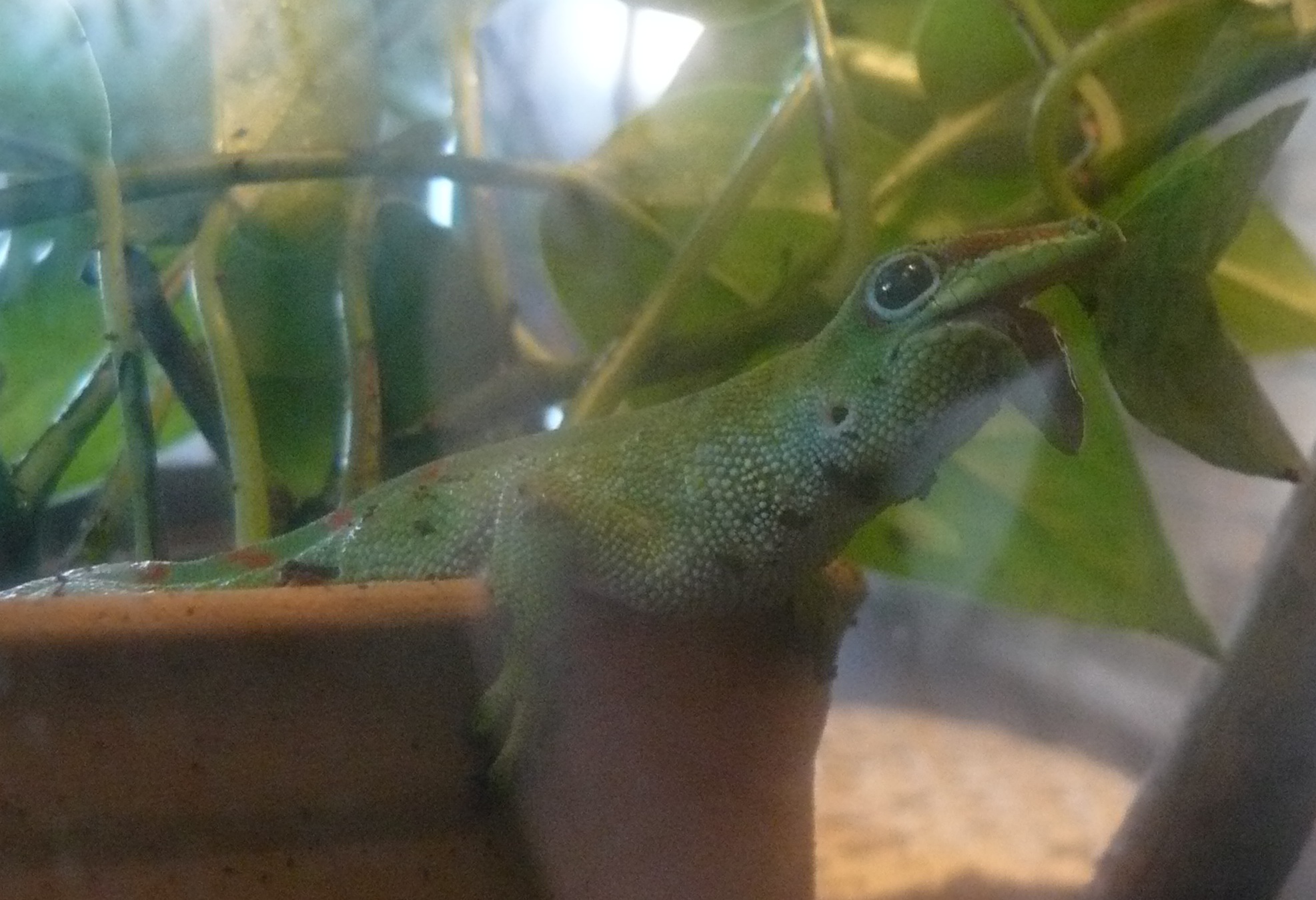 Dobrý den, pořídili jsme si Felsumu madagaskarskou grandis a nějak se nám nelíbí :o( Má pořád otevřenou tlamu a nabírá do ní podestýlku. Nežere a sem tam to s ní trhne, jako by měla škytavku. Můžete nám, prosím, poradit, kde děláme chybu? Děkuji a přeji hezký den.