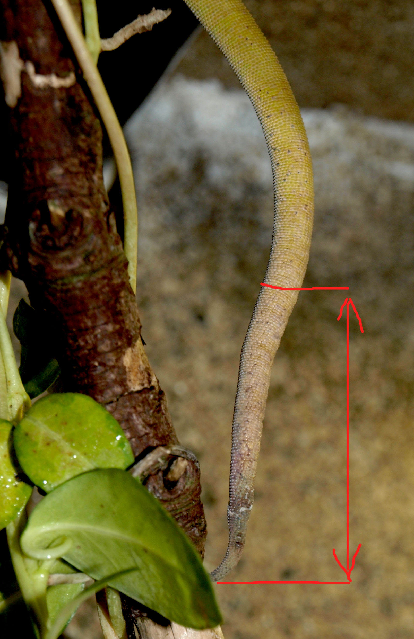 Chameleon jemenský, odumřelý konec ocásku