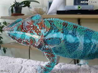 Jinak pro tazatele.. Záleží hlavně na náladě chameleona. Většina fotek krásně zbarvených chamů se pořizuje tak, že se mu ukáže sok..