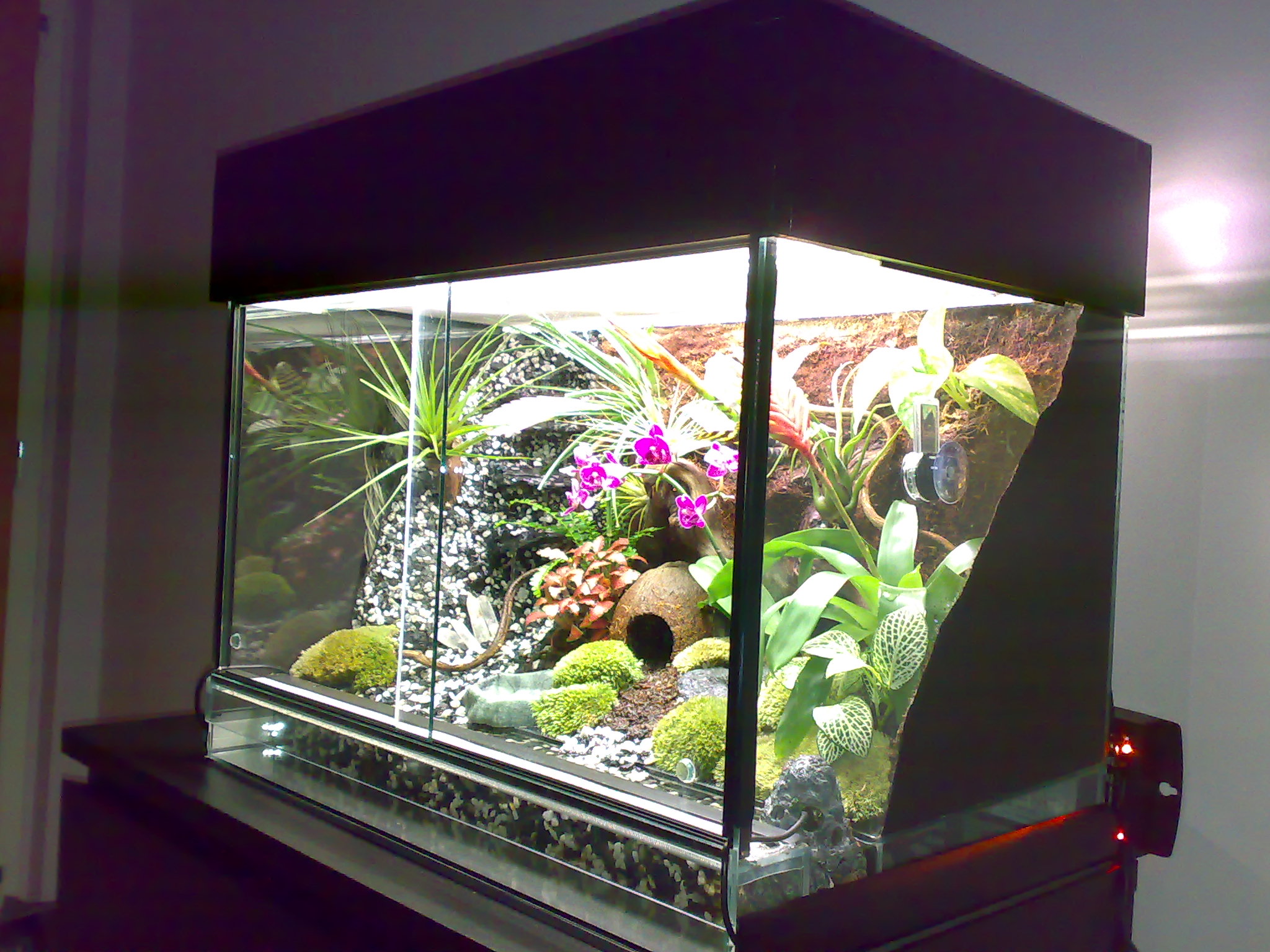 Mně teda připadá dost divný, že by důvod, proč se žabky schovávají do bromélií s vodou, byla vysoká vzdušná vlhkost. Tenhle druh žabek sice nemám, ale nezdá se mi to logické. Spíš bych řekla, že to bude naopak - tedy že je vzduch moc suchý (to se nejčastěji uvádí jako důvod tohohle chování v literatuře), nebo že moc vysoká teplota.